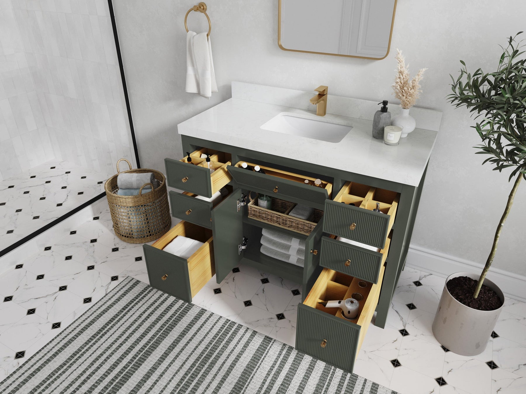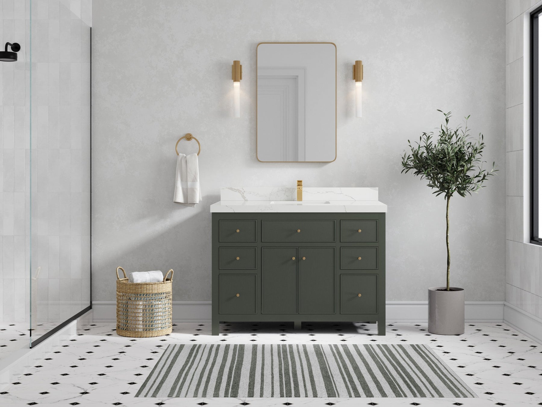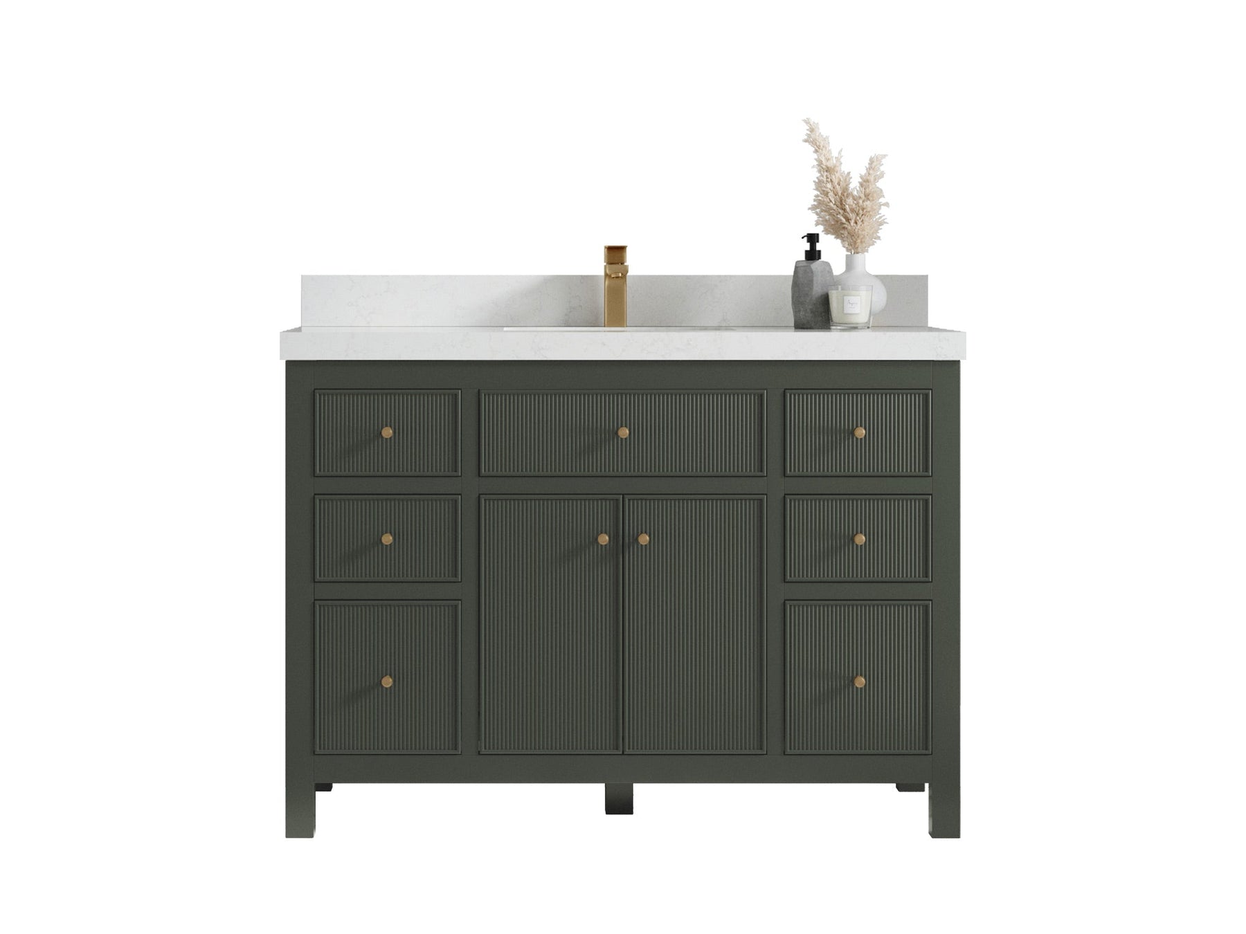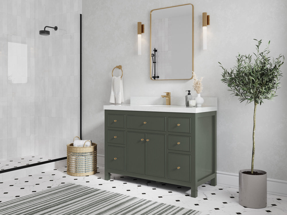 Sonoma 48 in W x 22 in D Free Standing Reeded Single Sink Bathroom Vanity | Pewter Green