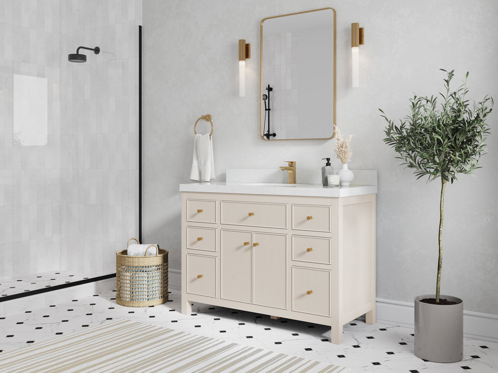 Faucet Hole(S): Comes with Single Faucet, 8 (in.) Widespread Faucet, Wall mount Faucets - Only Available for White Quartz and Carrara Quartz. (PLEASE ADD THIS CONFIGURATION UNDER COUNTERTOPS SECTION )