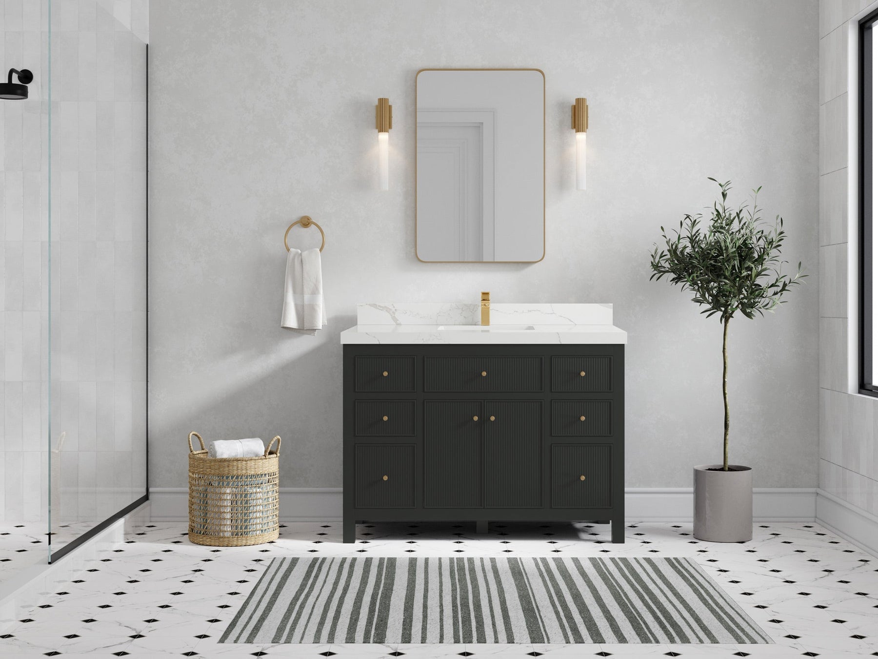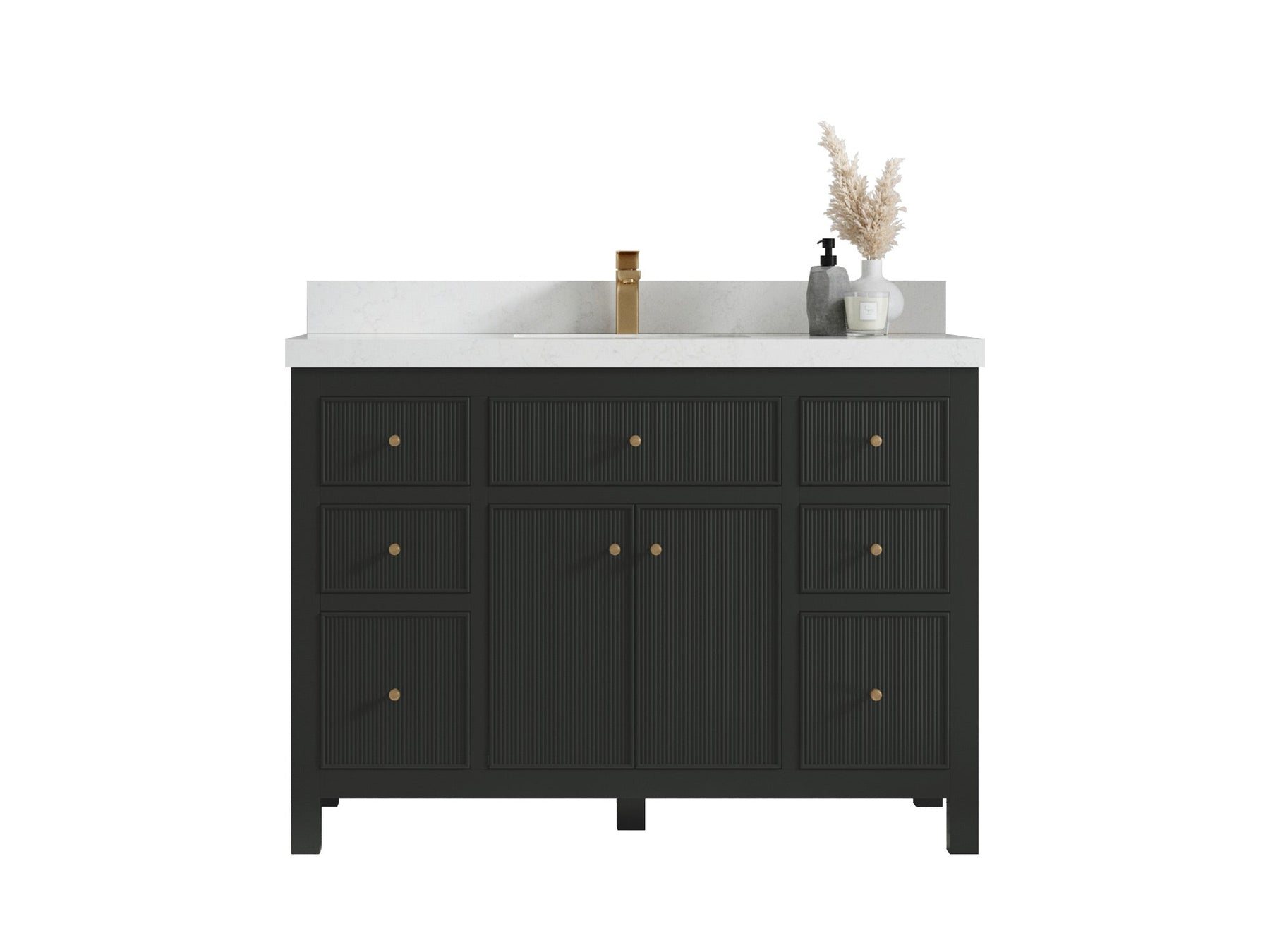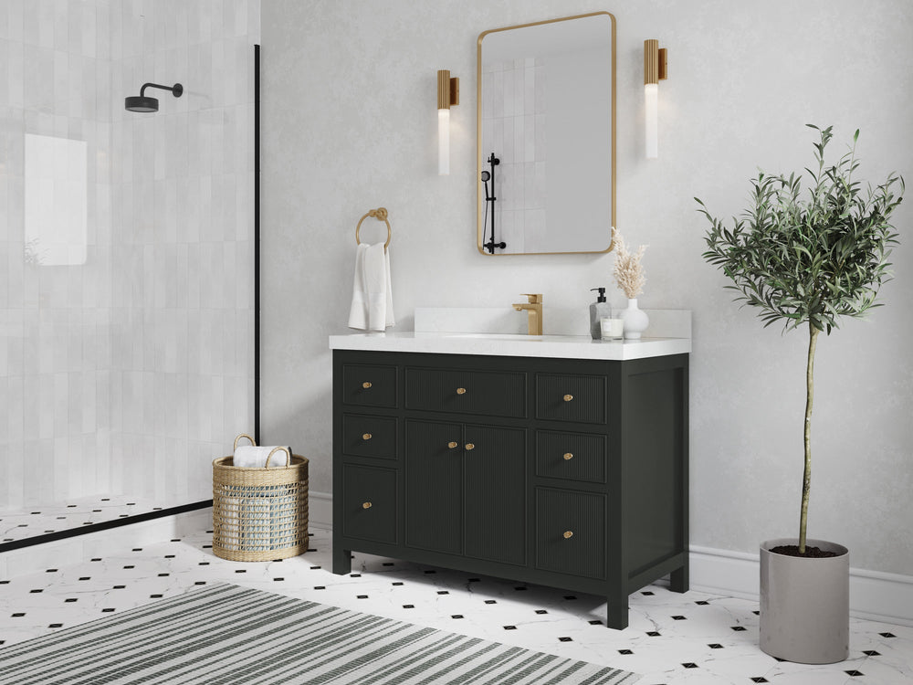 Sonoma 48 in W x 22 in D Free Standing Reeded Single Sink Bathroom Vanity | Black Top