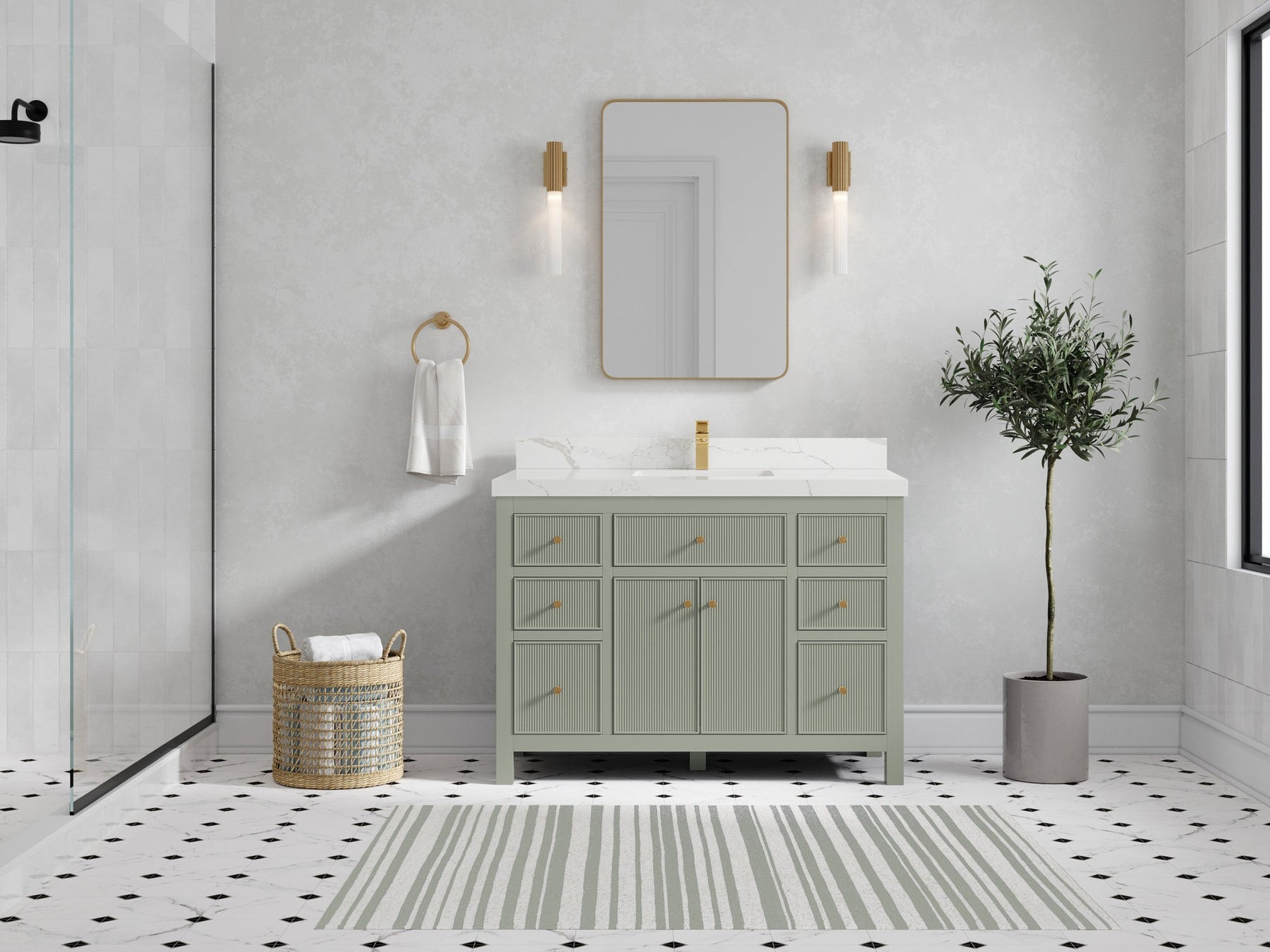 Sonoma 48 in W x 22 in D Free Standing Reeded Single Sink Bathroom Vanity | Evergreen