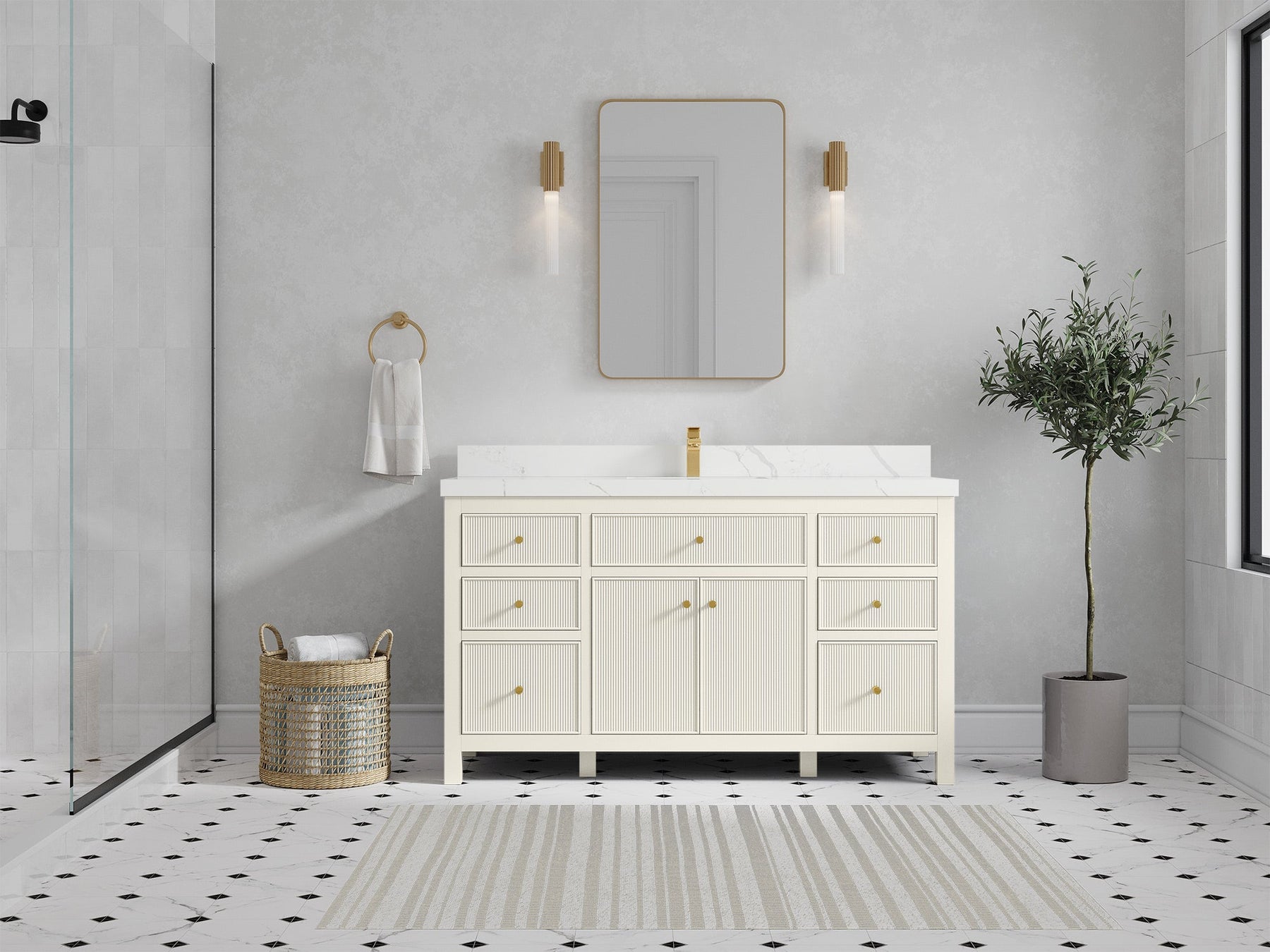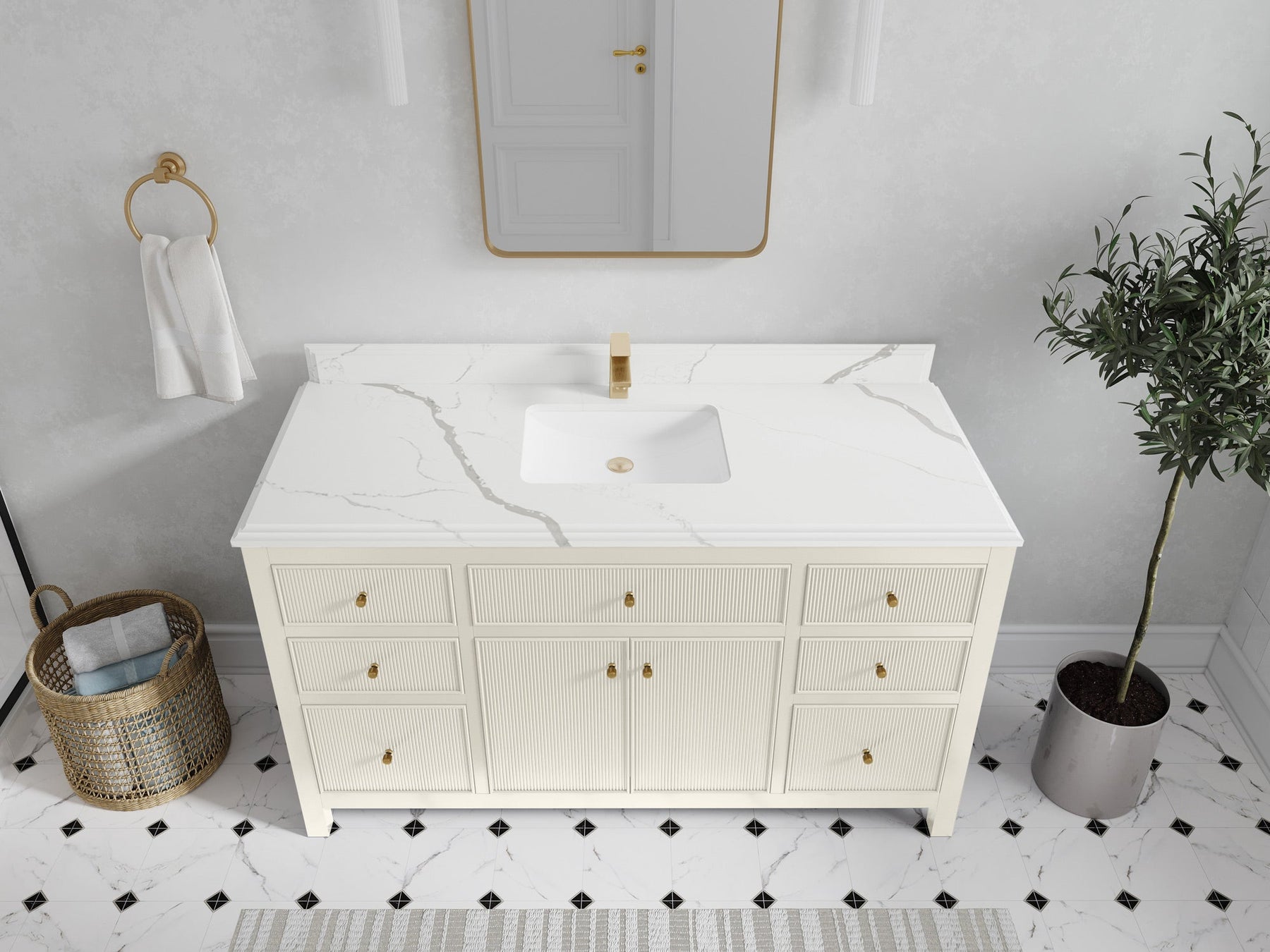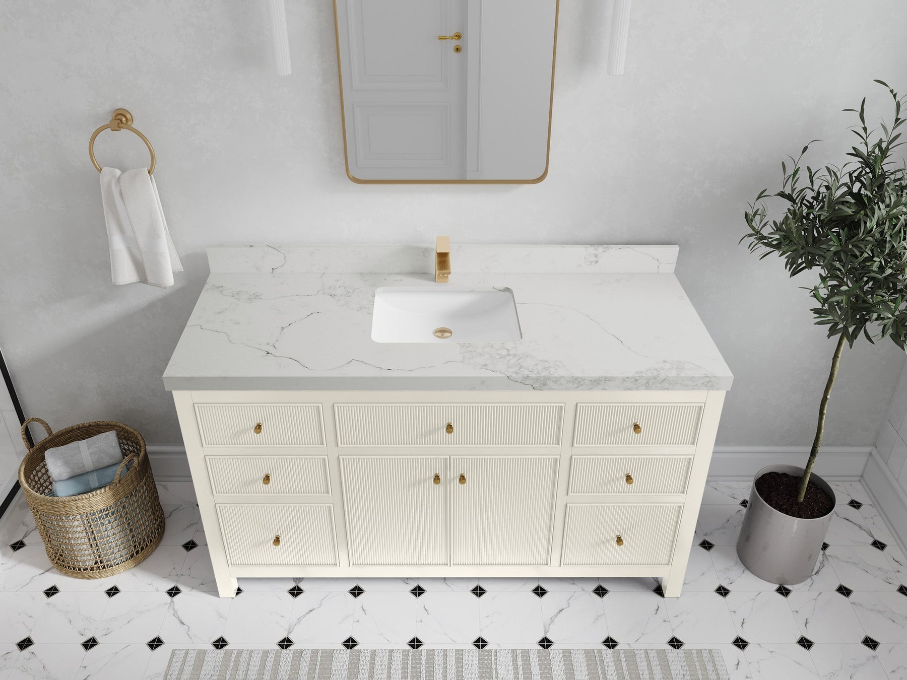 Sonoma 60 in W x 22 in D Free Standing Reeded Single Sink Bathroom Vanity | Alabaster