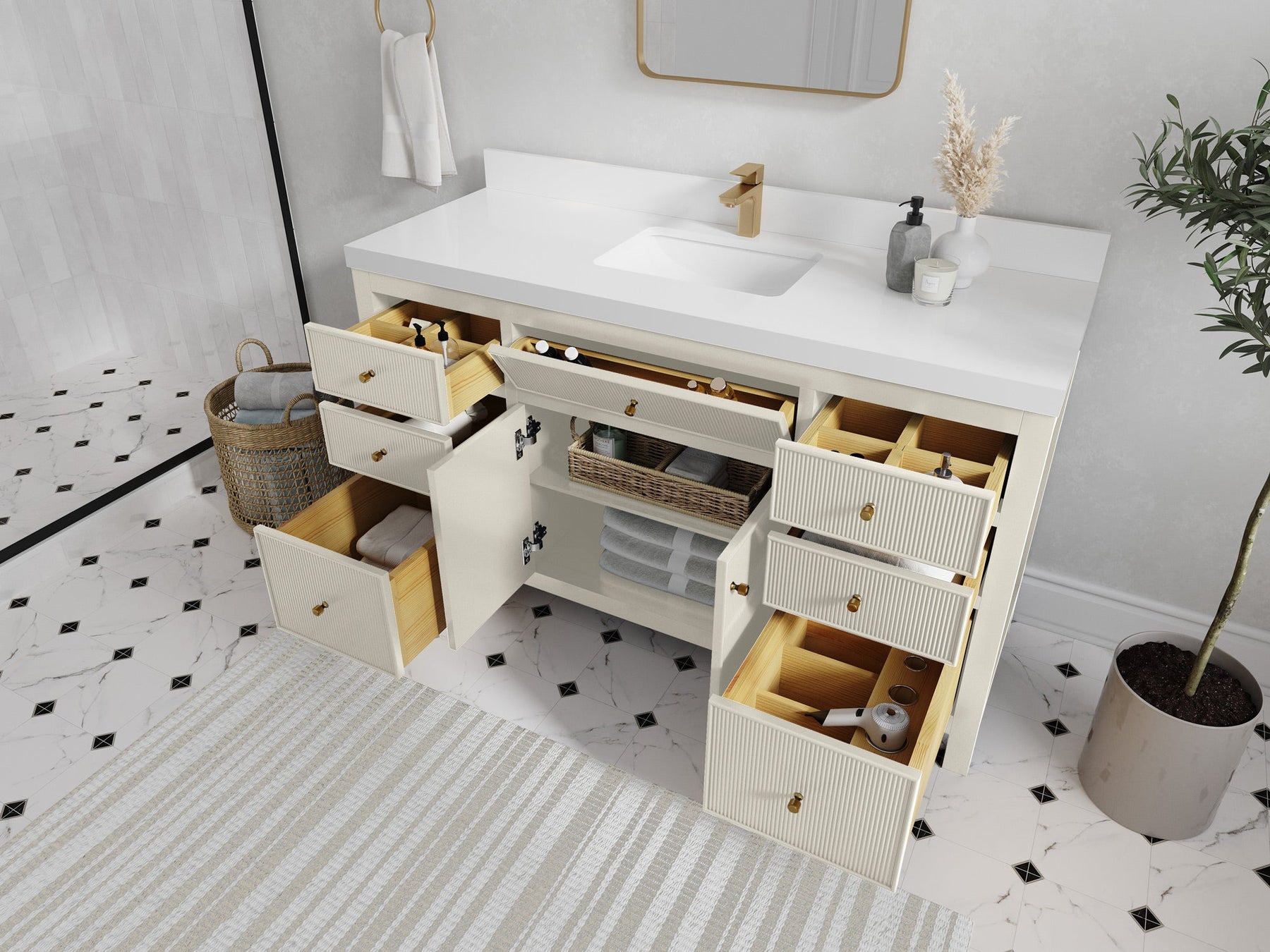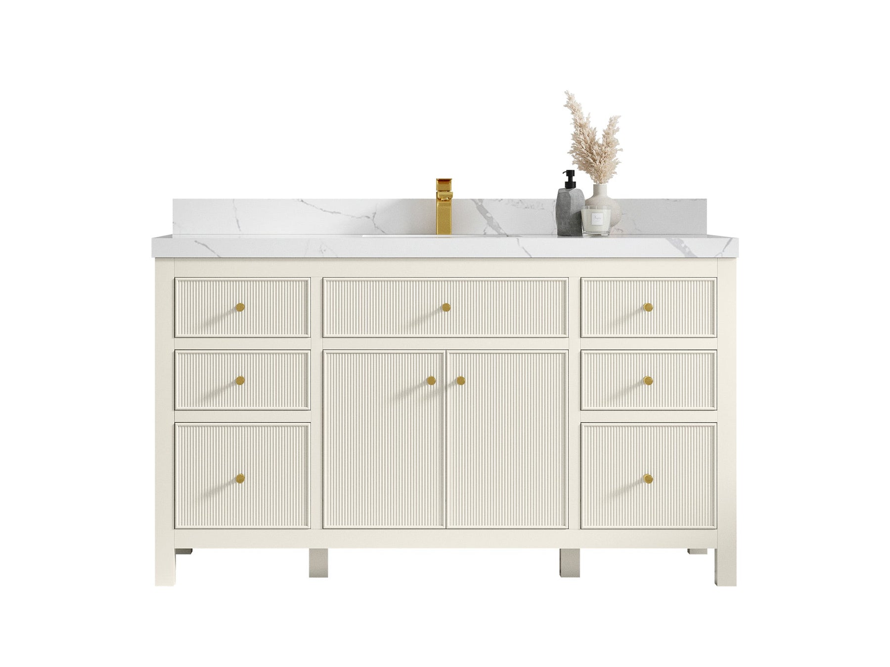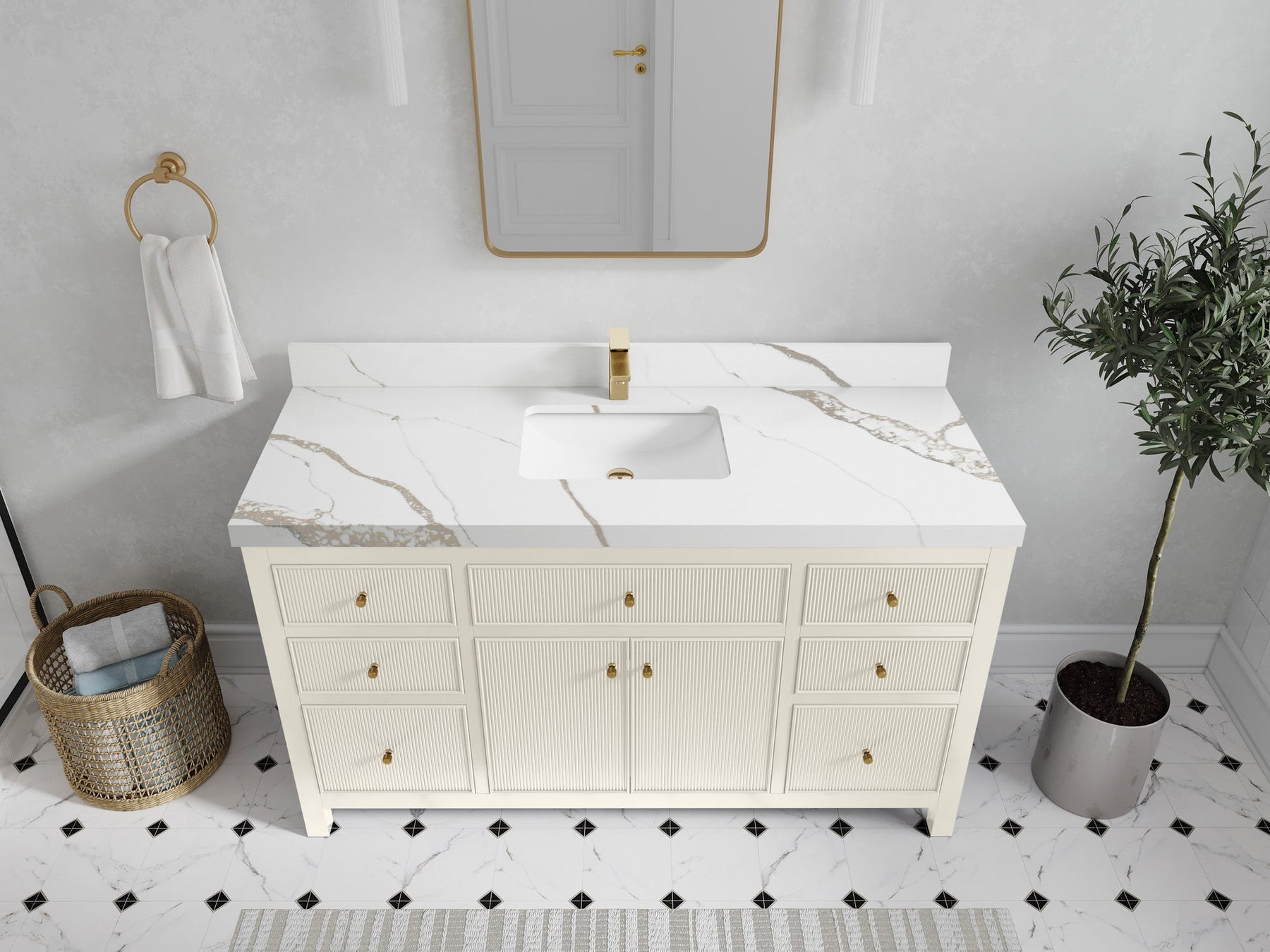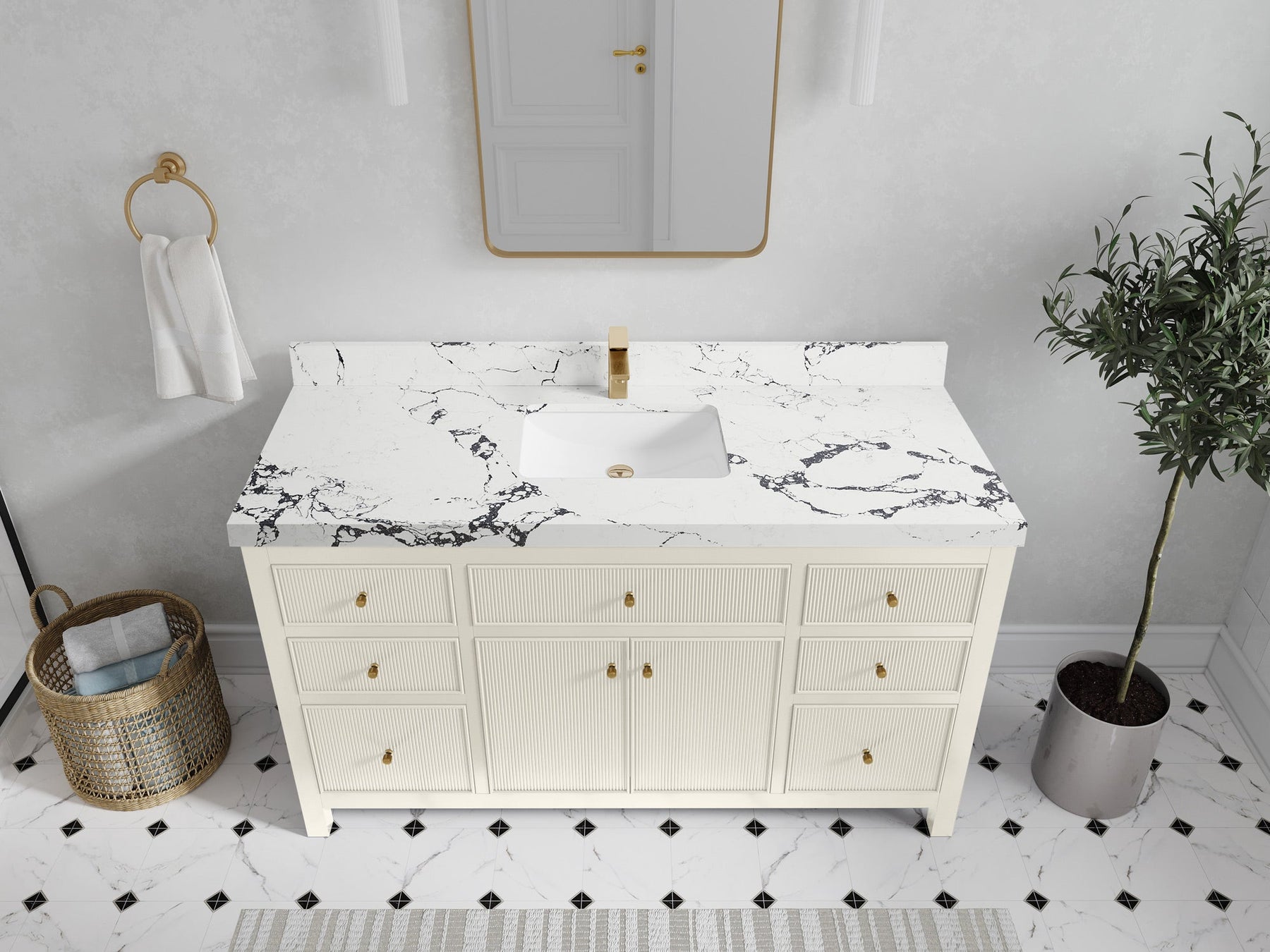 Sonoma 60 in W x 22 in D Free Standing Reeded Single Sink Bathroom Vanity | Alabaster