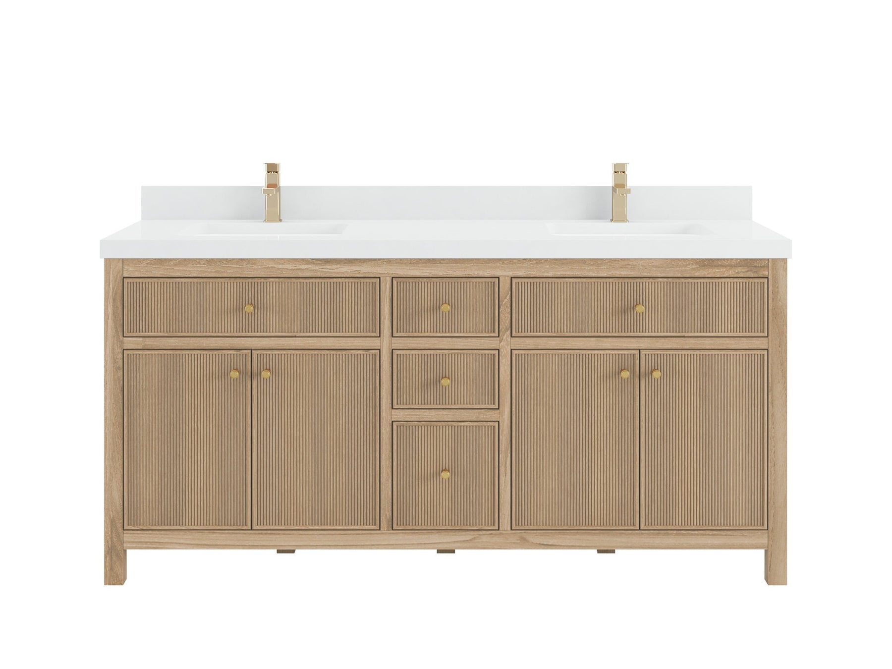 Crafted from premium teak wood with reeded design, this vanity showcases a sleek build, complemented by soft-close hardware for quiet and effortless operation. Add antique brass hardware for a touch of vintage charm!