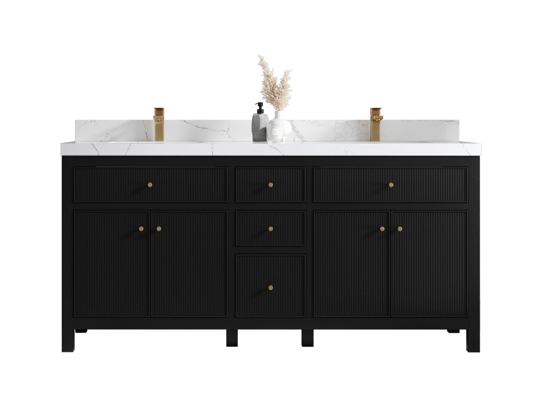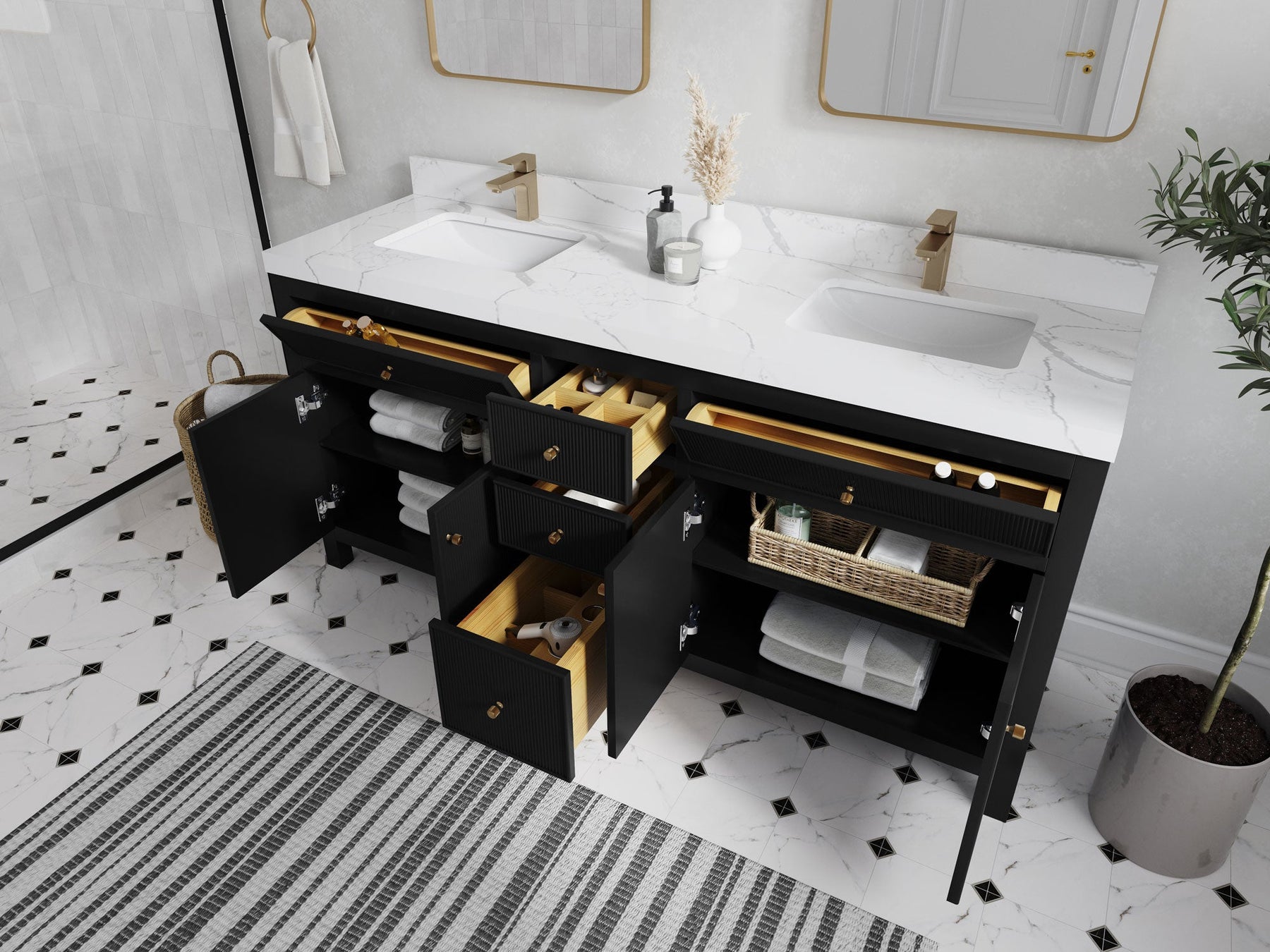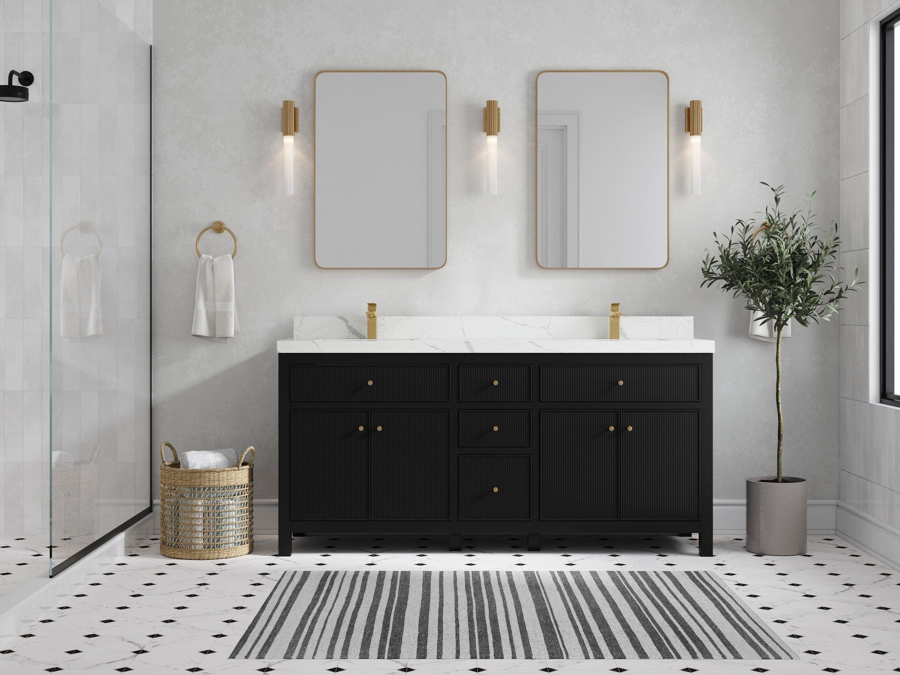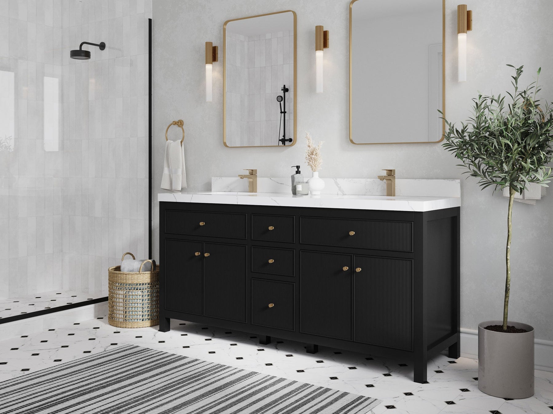 Sonoma 72 in W x 22 in D Free Standing Reeded Double Sink Bathroom Vanity | Black