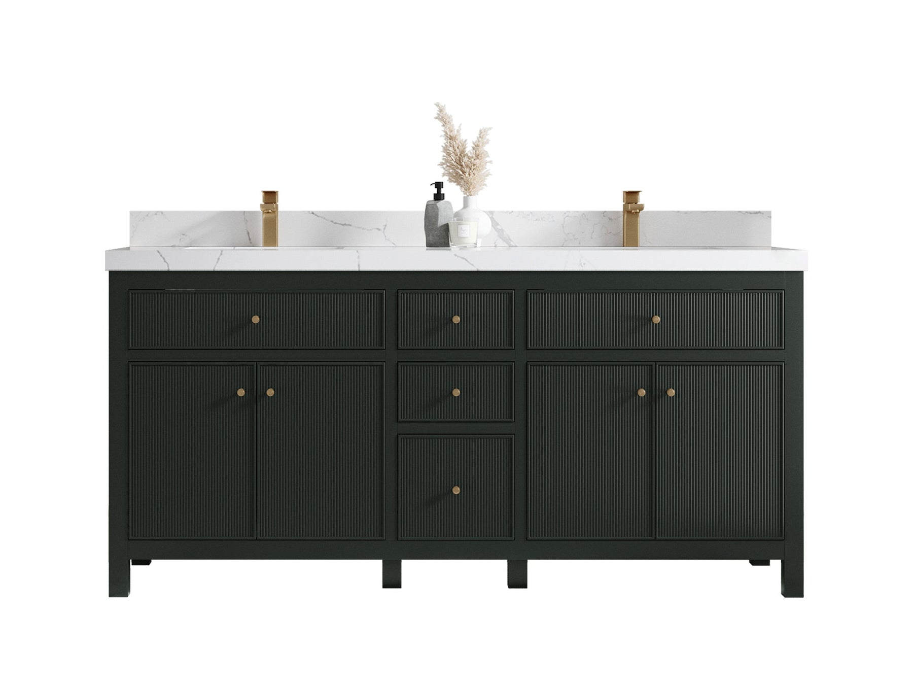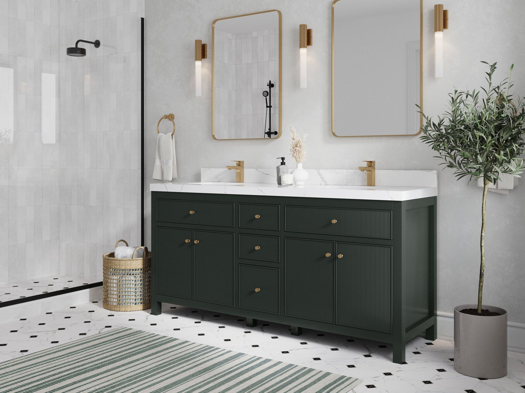 Sonoma 72 in W x 22 in D Free Standing Reeded Double Sink Bathroom Vanity | Dark Forest Green