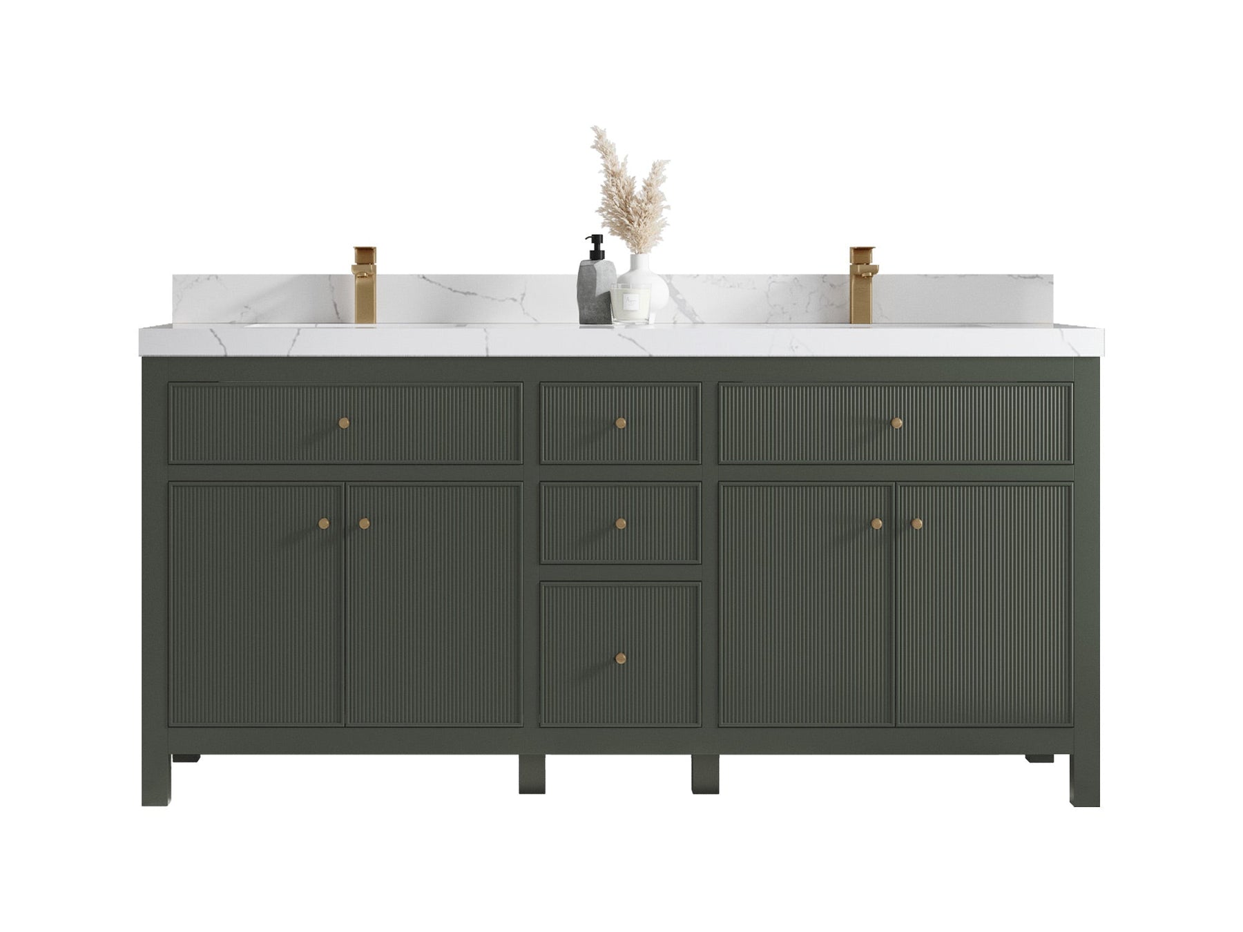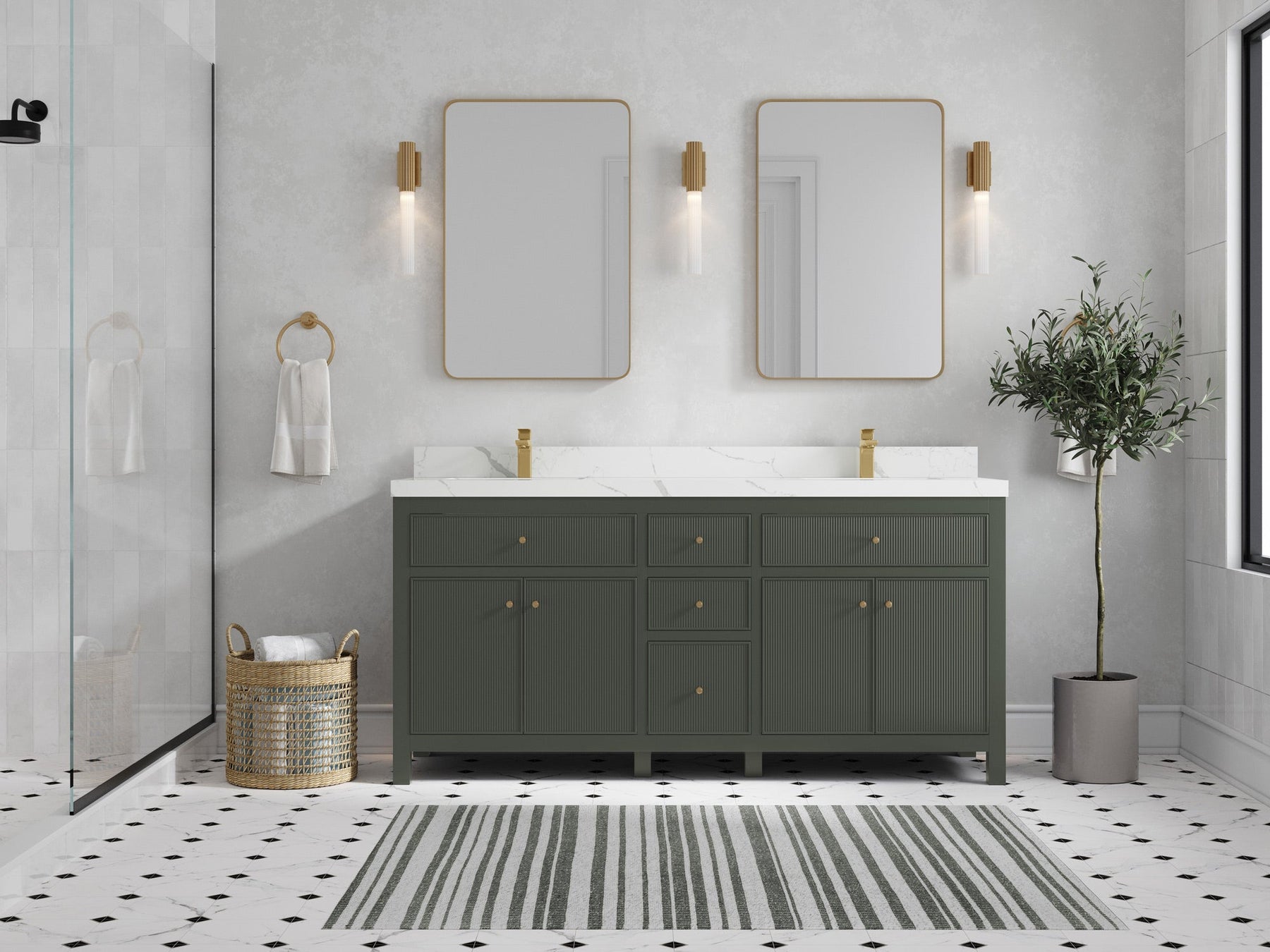 Sonoma 72 in W x 22 in D Free Standing Reeded Double Sink Bathroom Vanity | Pewter Green