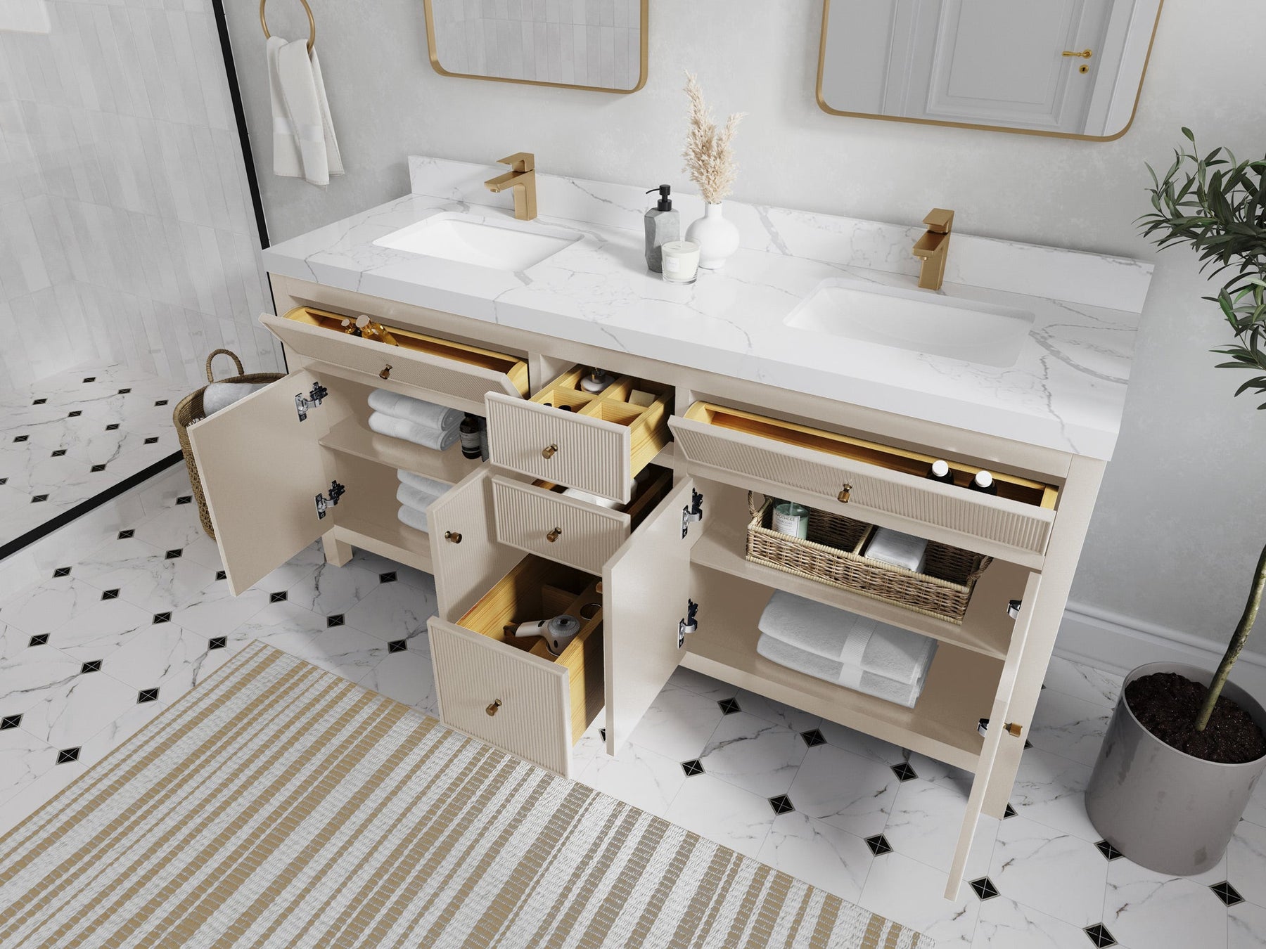 A vanity unit – the centerpiece of any luxurious home bathroom. Add convenience, decadence and showmanship to your daily life, and experience the elegance of a five-star hotel with the Sonoma reeded vanity unit.