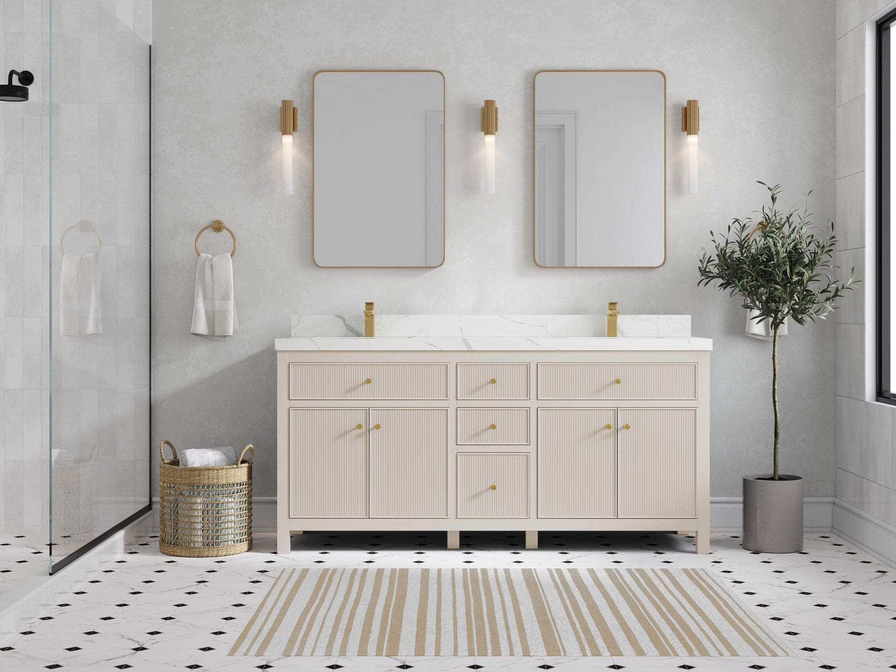 Sonoma 72 in W x 22 in D Free Standing Reeded Double Sink Bathroom Vanity