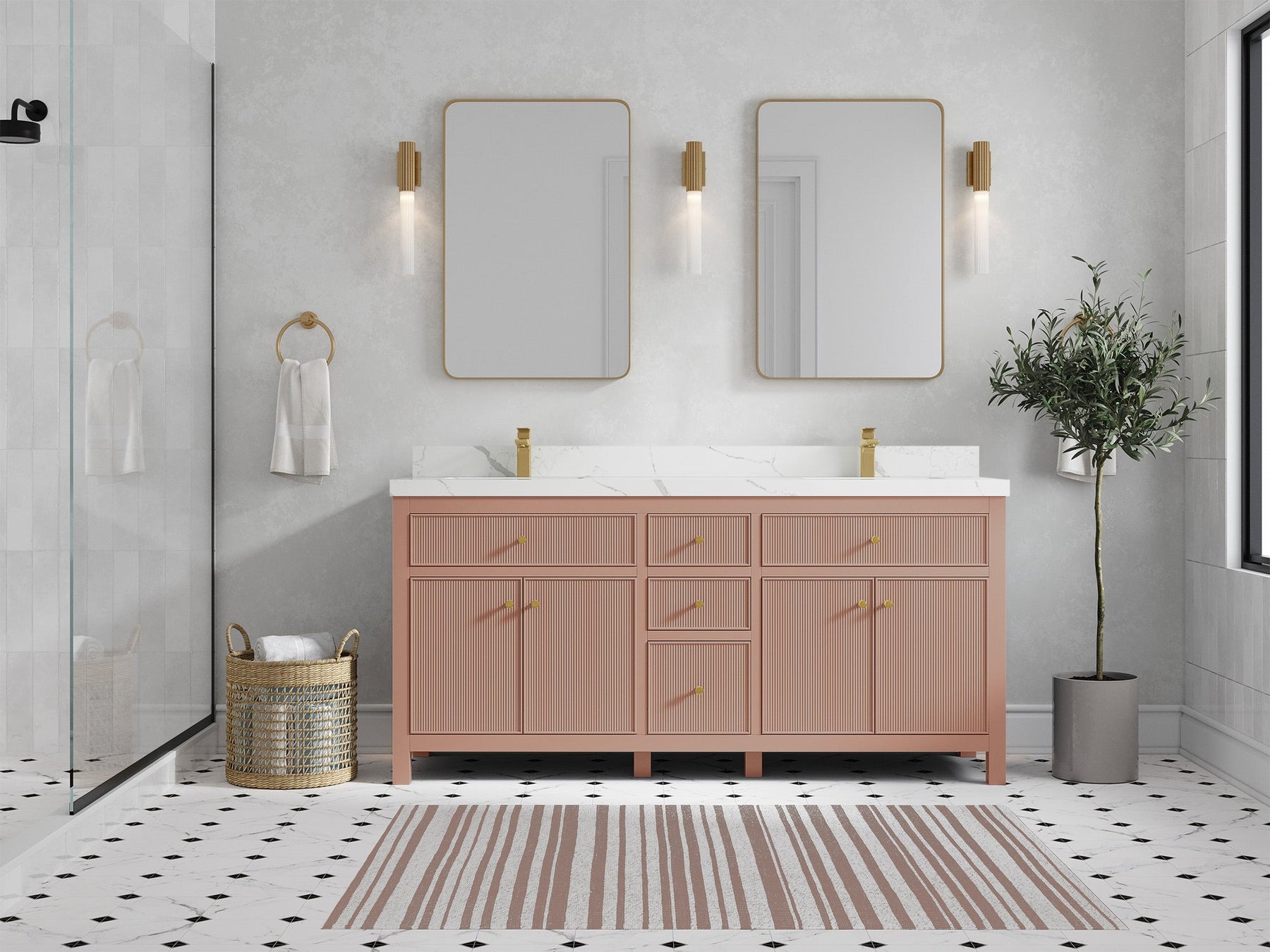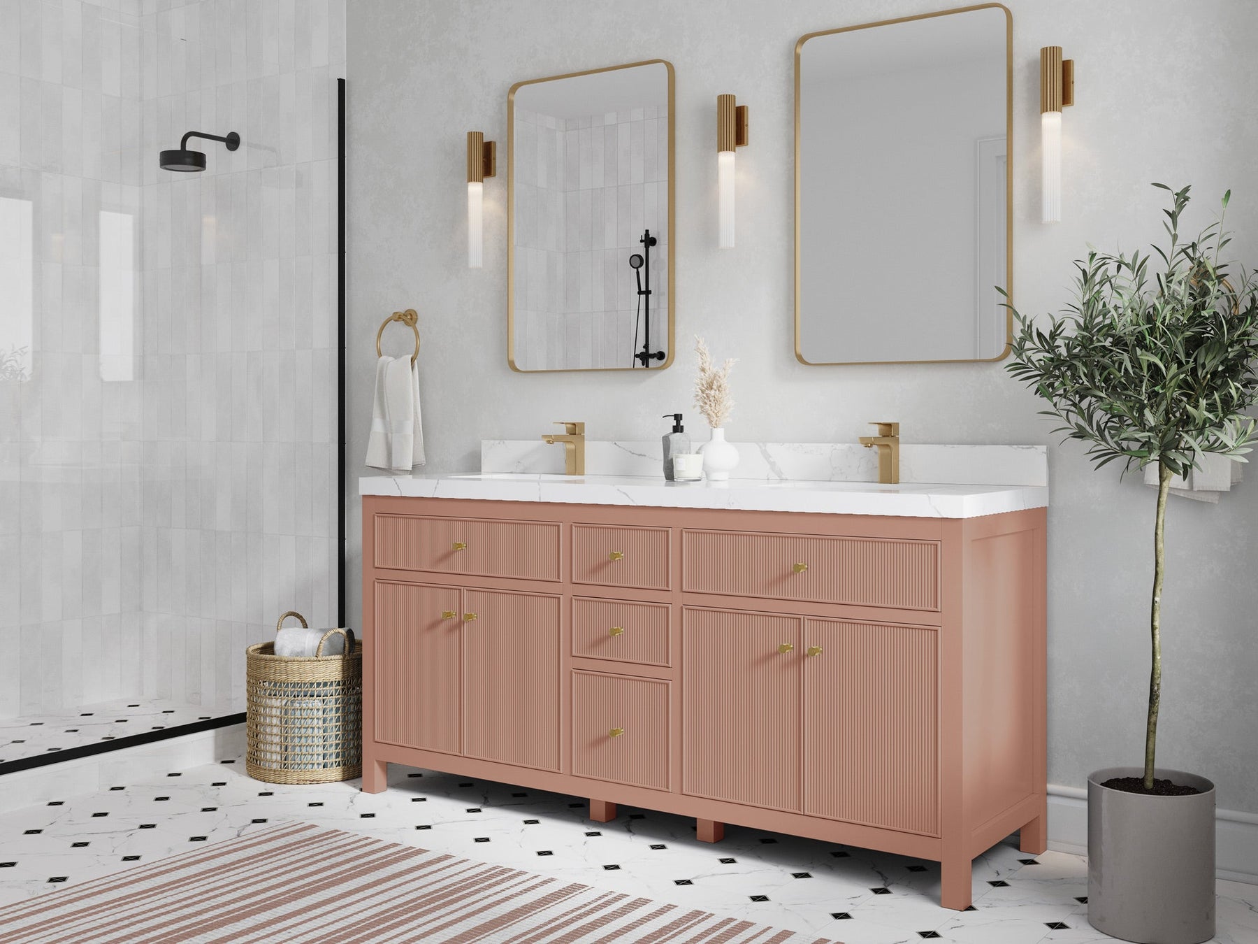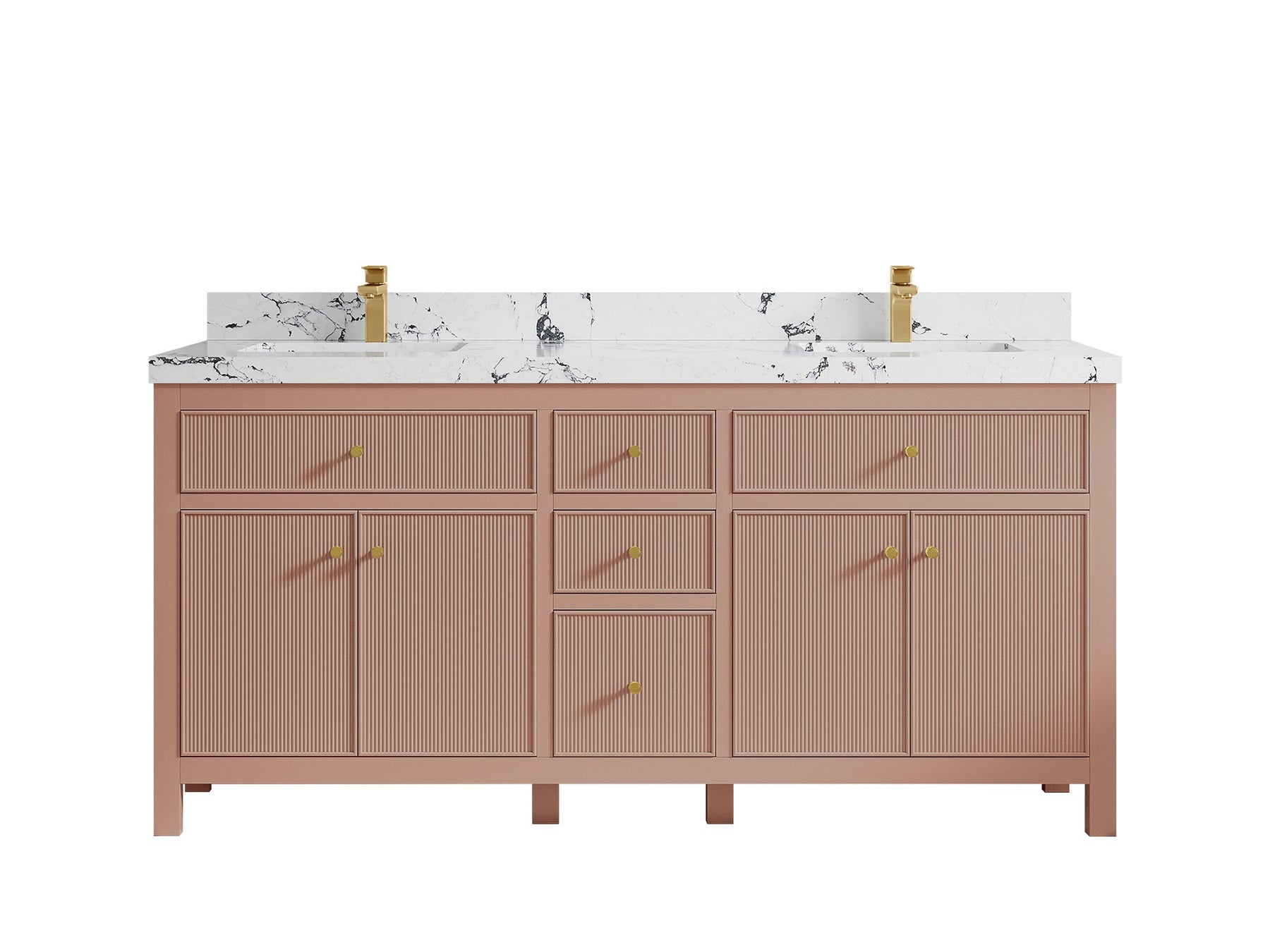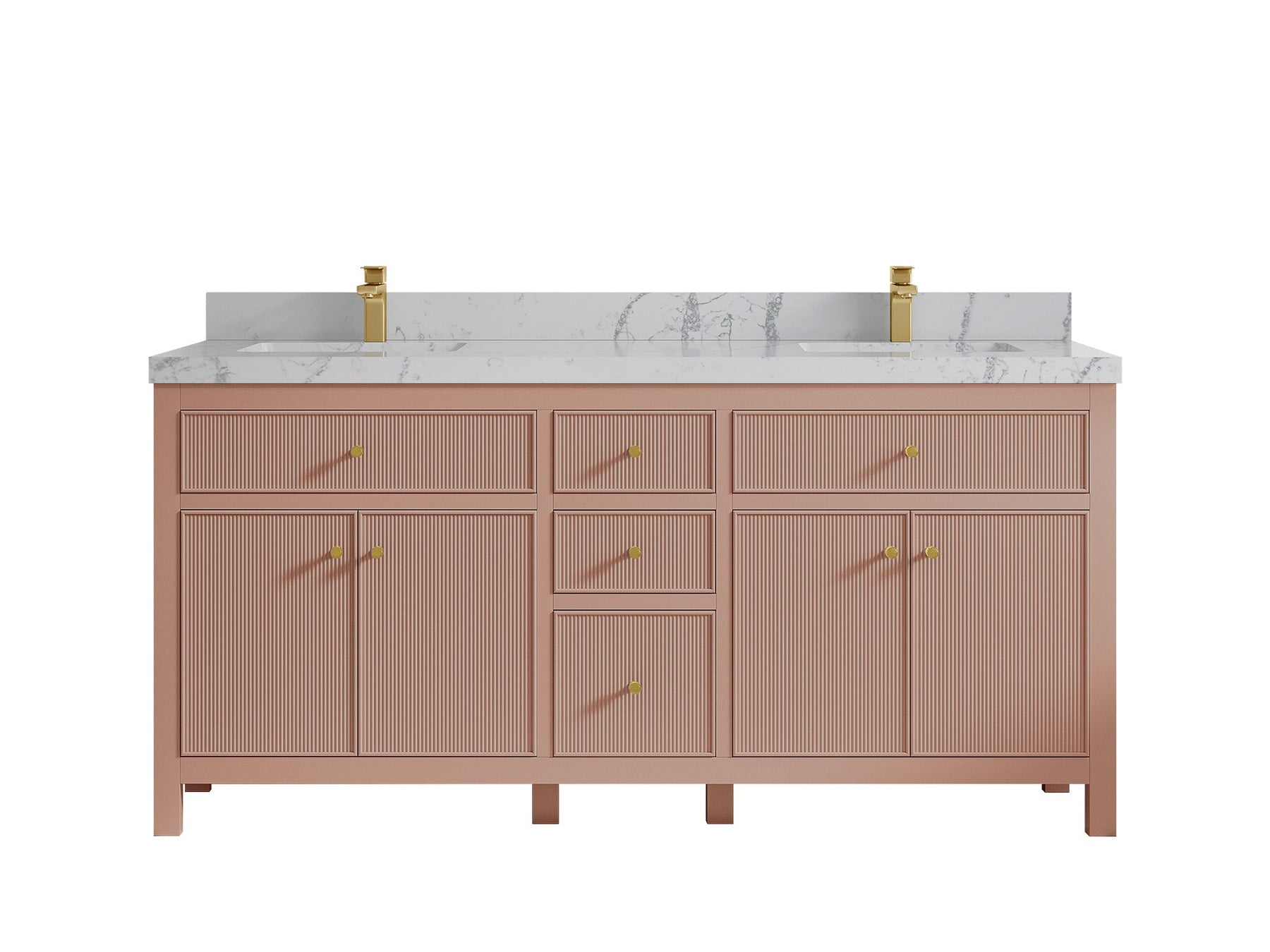 Vanity Countertops options: For Calacatta Laza Quartz, Empira White Quartz, Pure White Quartz we have 2 options Straight-Mitered Edge & Double Cove Edge, For Calacatta Black Quartz, Calacatta Gold Quartz, Calacatta Nuvo Quartz, Carrara Marble, Carrara Quartz, Pearl Light Gray Quartz, Piatra Gray Quartz, Venatino Quartz, and Light Concrete Gray Quartz we only have Straight - Mitered Edge option.