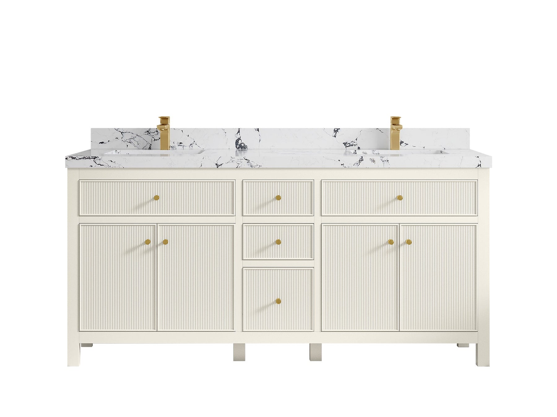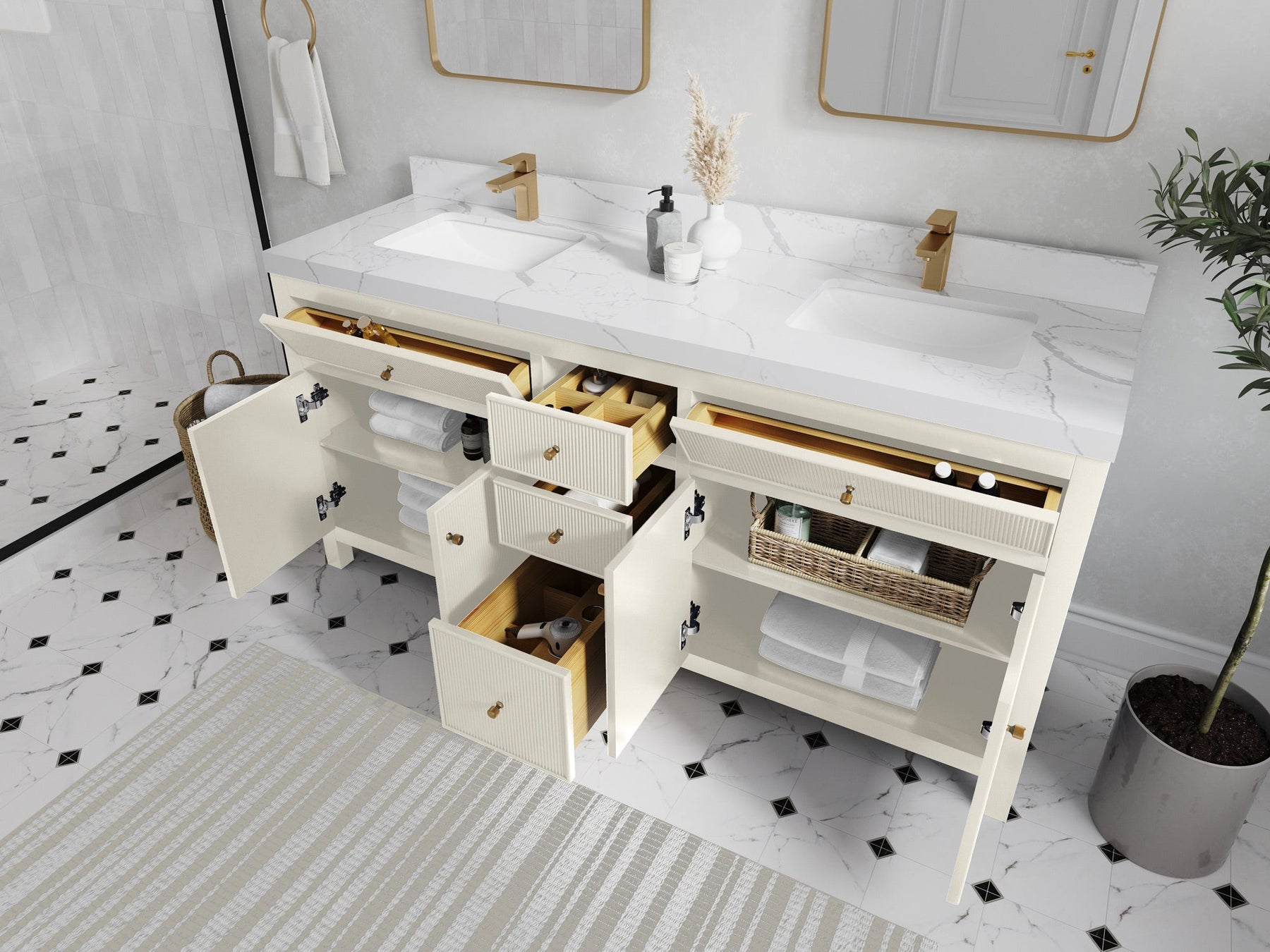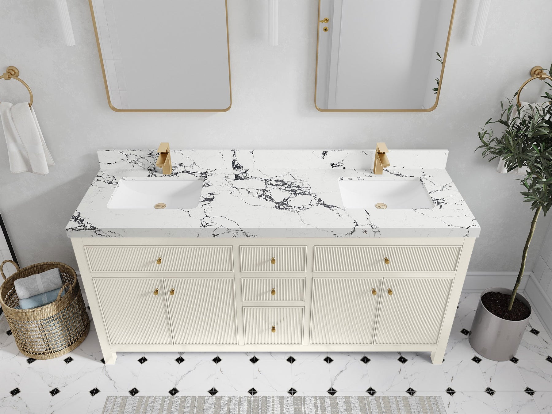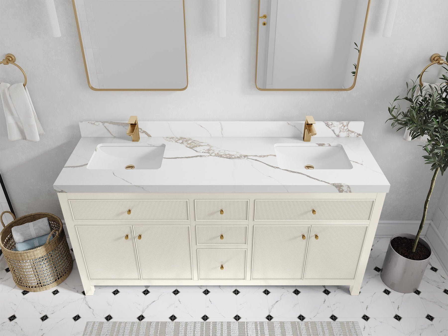 Sonoma 72 in W x 22 in D Free Standing Reeded Double Sink Bathroom Vanity | Alabaster