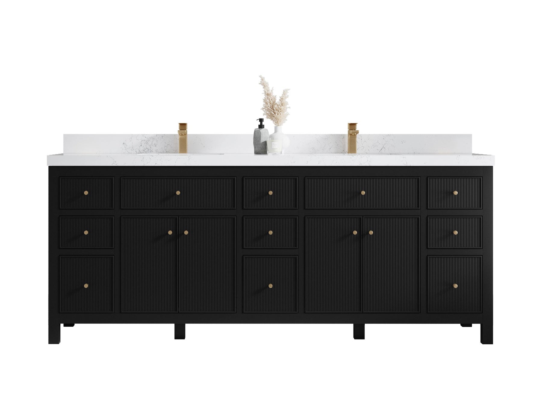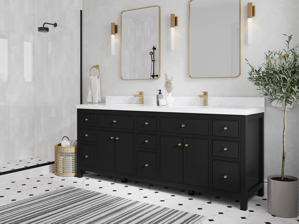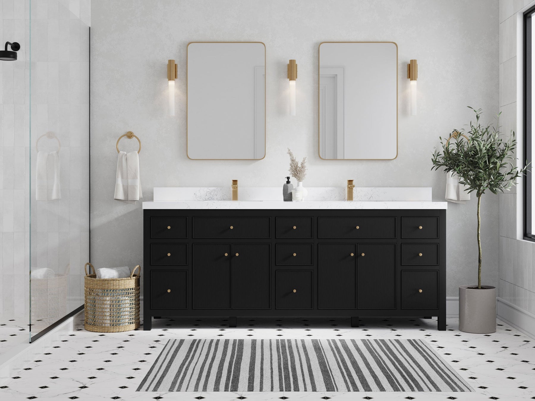 Sonoma 84 in W x 22 in D Free Standing Reeded Double Sink Bathroom Vanity | Black