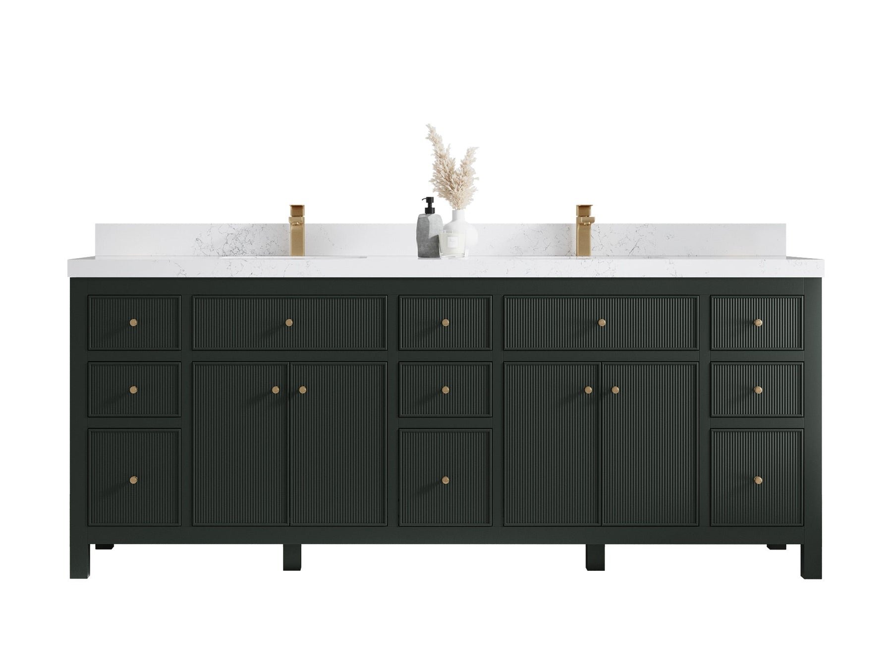 Vanity Countertops options: For Calacatta Laza Quartz, Empira White Quartz, Pure White Quartz we have 2 options Straight-Mitered Edge & Double Cove Edge, For Calacatta Black Quartz, Calacatta Gold Quartz, Calacatta Nuvo Quartz, Carrara Marble, Carrara Quartz, Pearl Light Gray Quartz, Piatra Gray Quartz, Venatino Quartz, and Light Concrete Gray Quartz we only have Straight - Mitered Edge option.