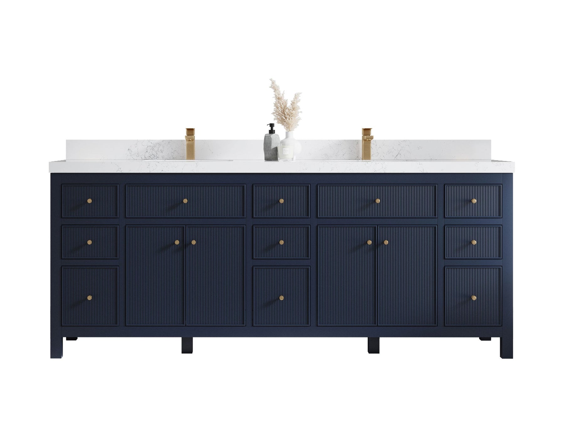 Sonoma 84 in W x 22 in D Free Standing Reeded Double Sink Bathroom Vanity | Hale Navy Blue