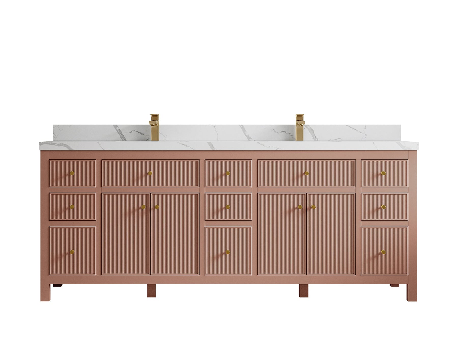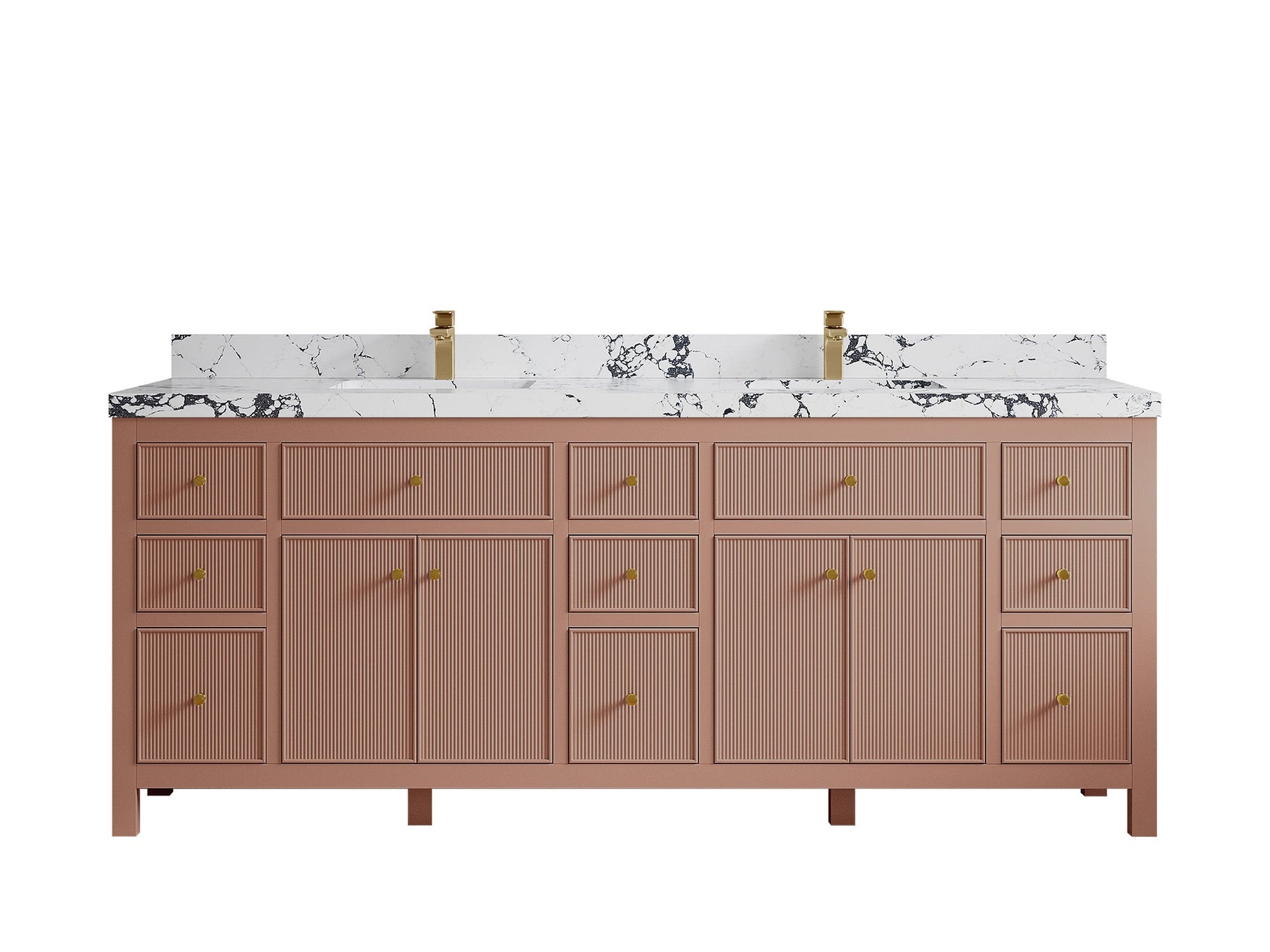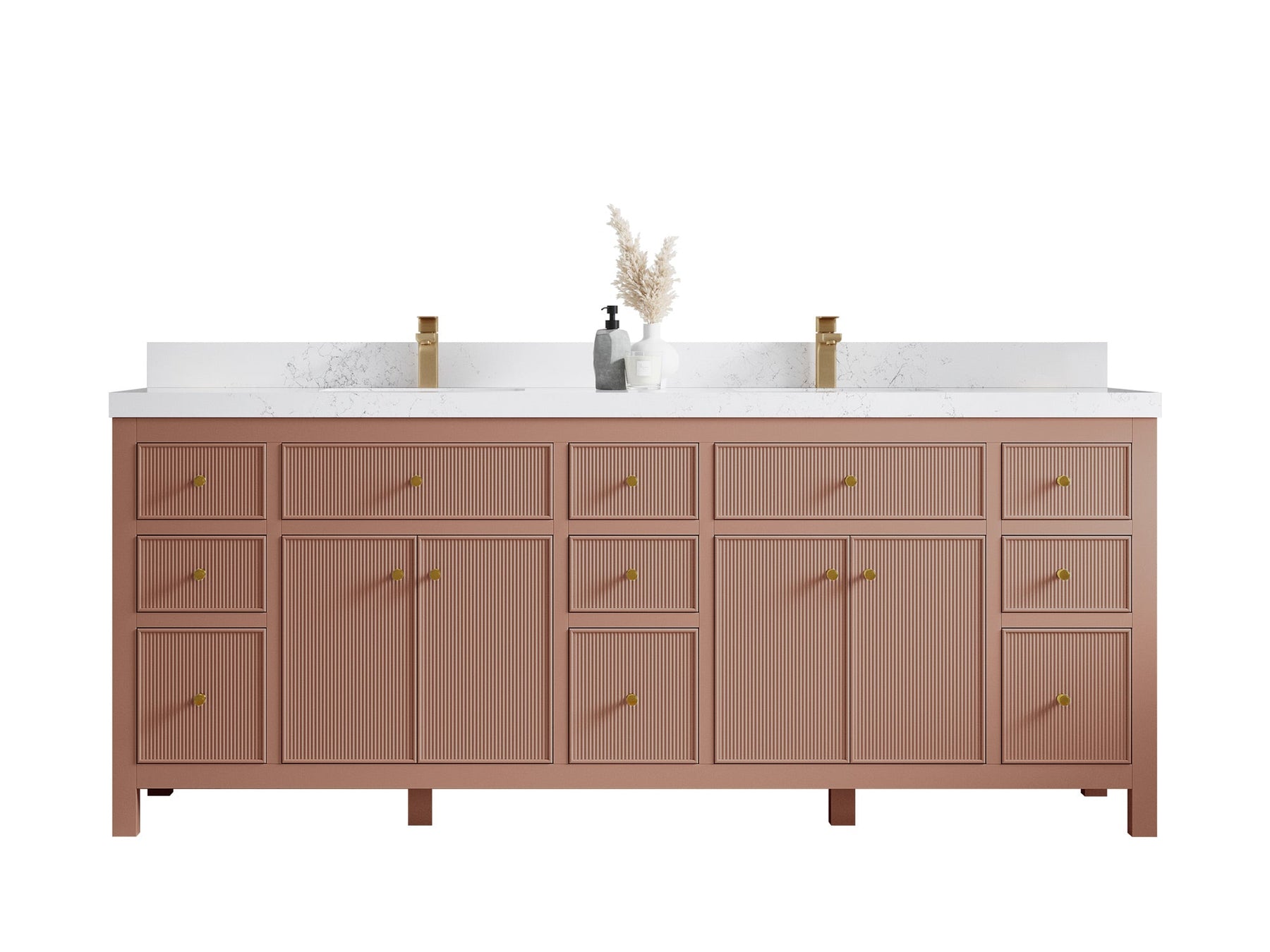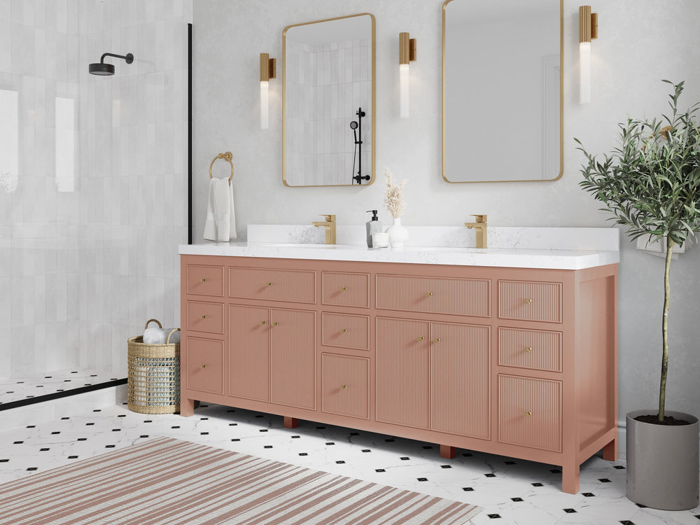 Sonoma 84 in W x 22 in D Free Standing Reeded Double Sink Bathroom Vanity | Warm Terracotta