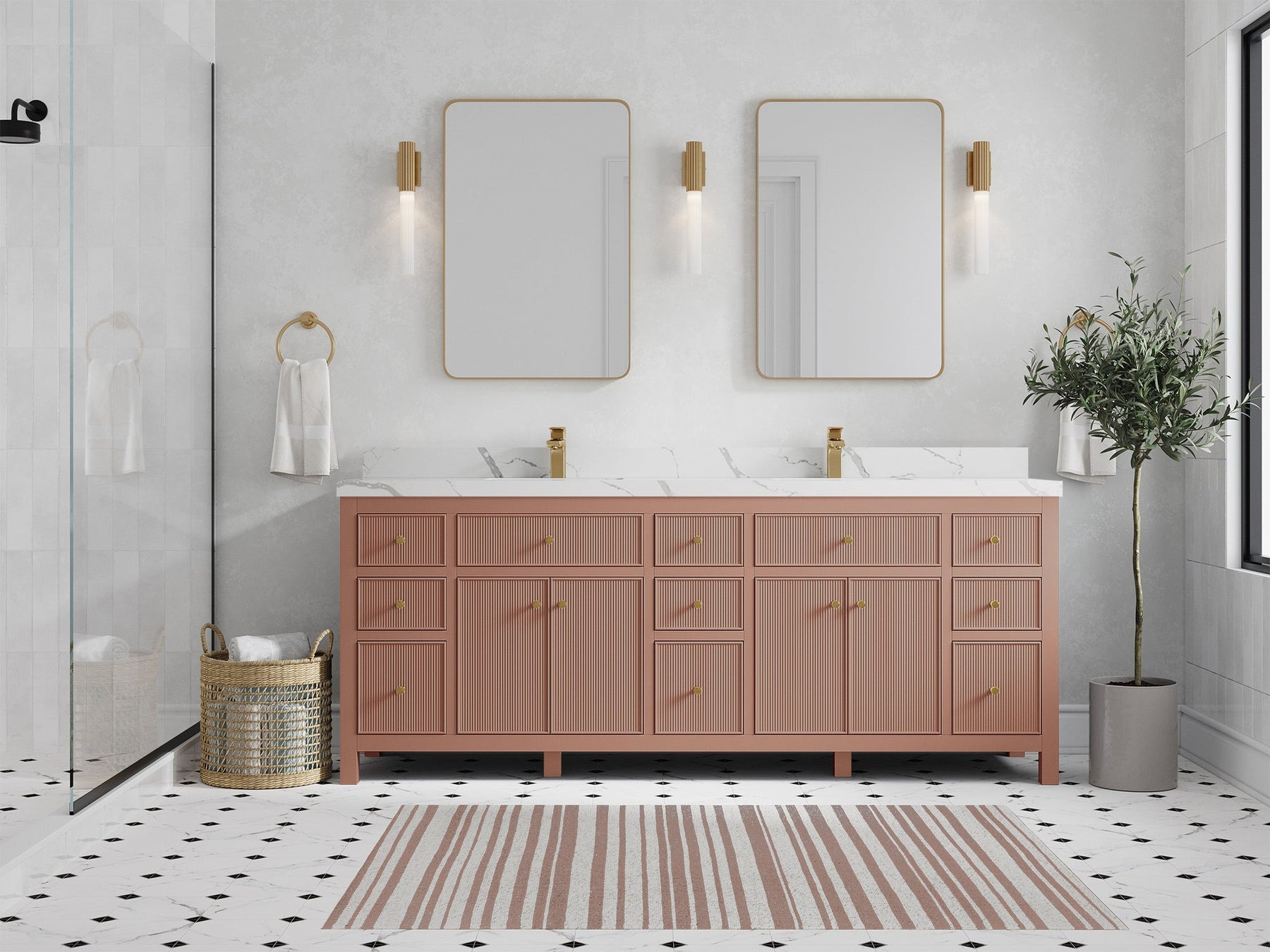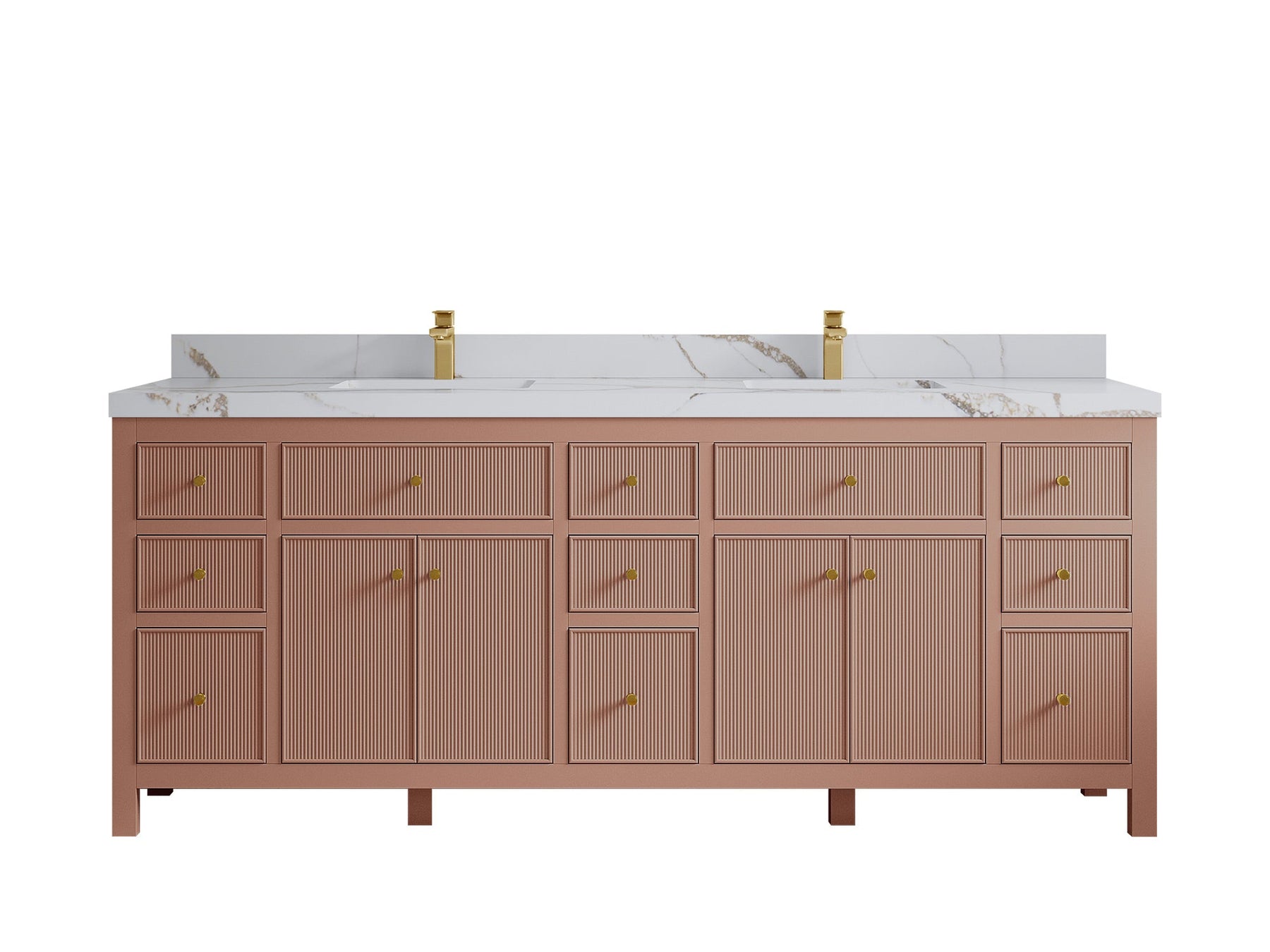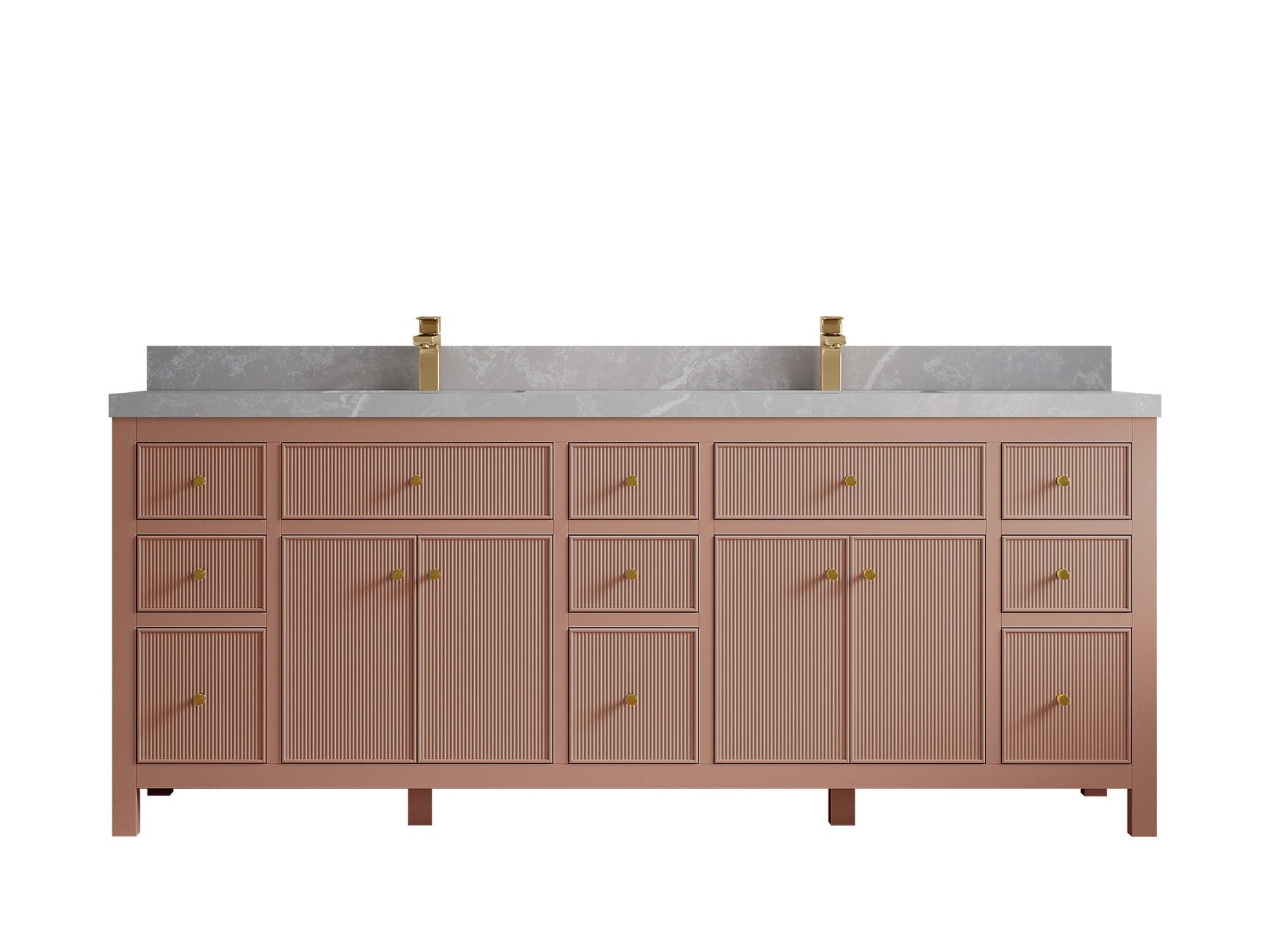 Sonoma 84 in W x 22 in D Free Standing Reeded Double Sink Bathroom Vanity | Warm Terracotta