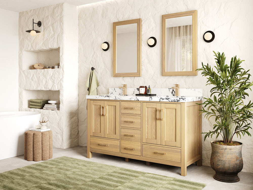 Choose a natural wood bathroom vanity with sink that will stand the test of time from our exceptional collection of wood bathroom vanities. Our vanities are not just visually stunning, but also built to last from the finest materials available. At our core, we believe that durability and quality are essential, and we prioritize sustainably sourced materials in all of our products. The timeless appearance of our bathroom vanities adds warmth and character to any bathroom, making it a perfect addition for those seeking an enduring and stylish upgrade. With our unwavering commitment to quality and sustainability, you can be confident in your investment. Browse our range of natural wood vanities today and transform your bathroom into an oasis that will endure for years to come.